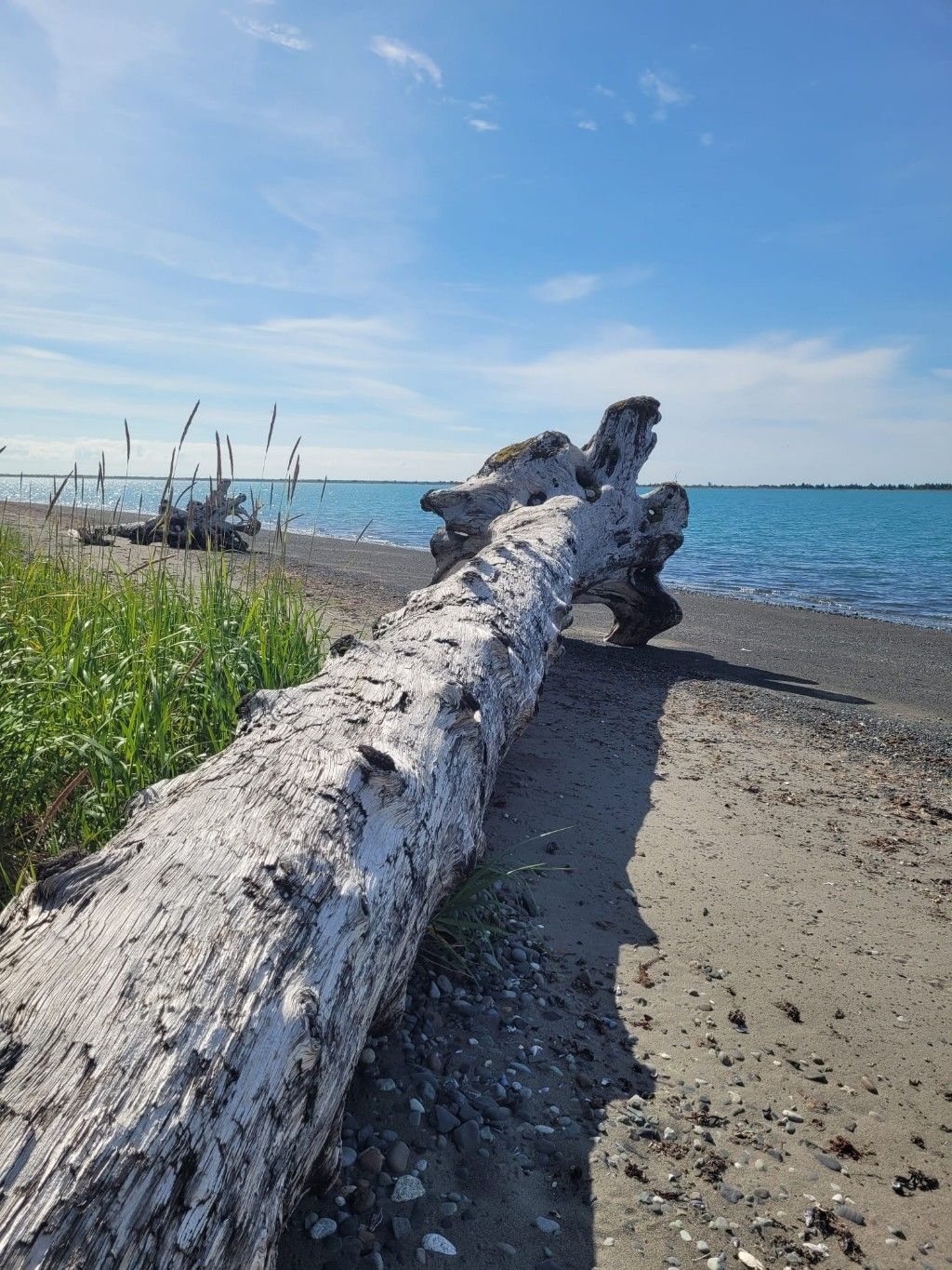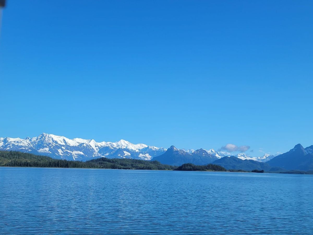 Mittwoch sieht die Welt wieder ganz anders aus. Schon früh am Morgen Sonnenschein und klare Sicht auf die Gebirgskette mit ihren Schneehauben. Der Prince William Sound präsentiert sich friedlich , noch nicht einmal Pazifik-Schwell kommt bei uns an. Leider auch kein Wind, bedeutet kein Segeln, der Motor läuft. Ganze Bäume treiben im Wasser. Trotz elektronischer Seekarte und Radar muss man also trotzdem noch gut Ausschau halten.