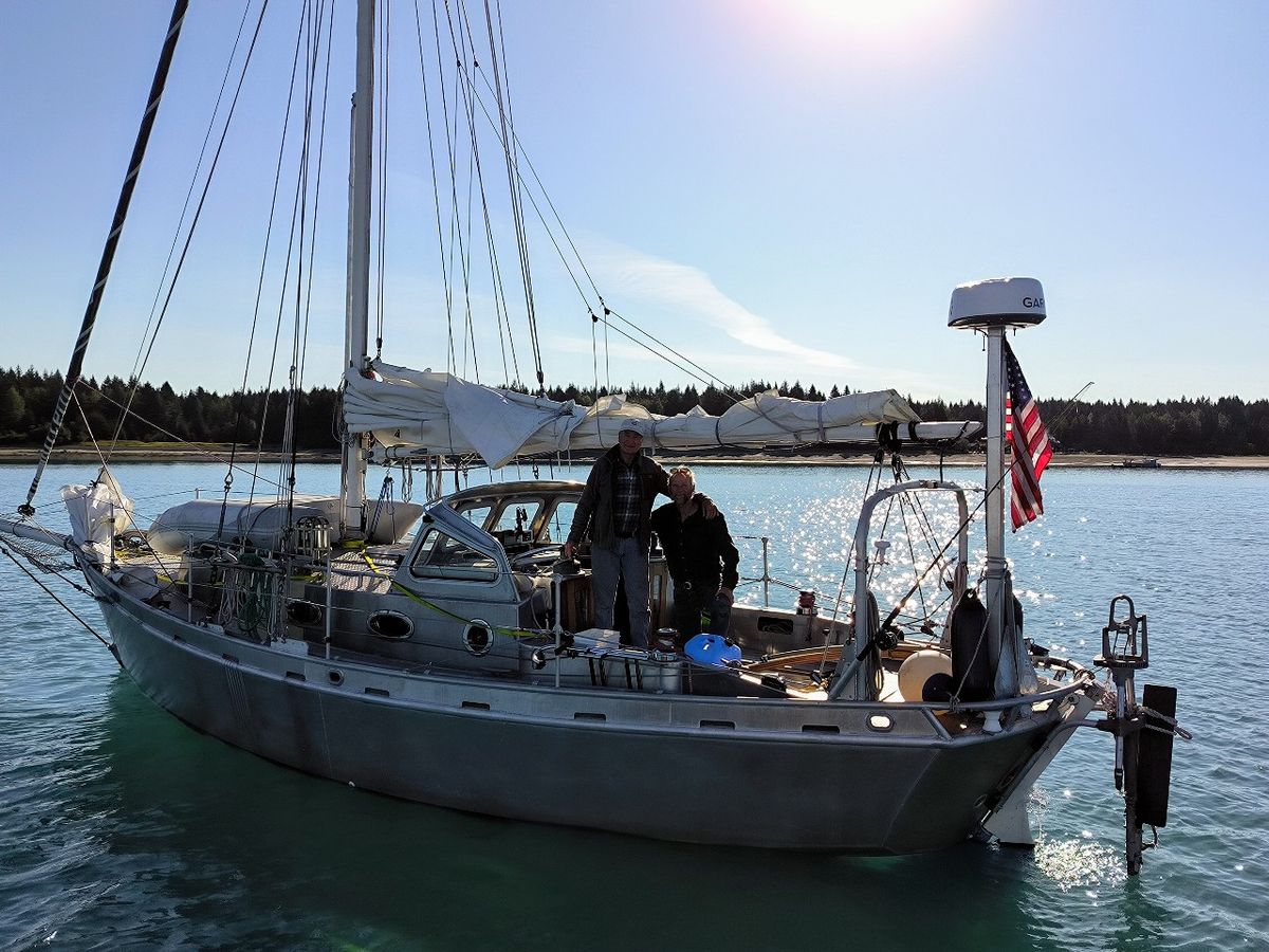 Morgens beim ersten Blick aus dem Cockpit entdecken wir unsere ehemalige Aries Windsteueranlage. Andy, dem wir das Teil in Kodiak verkauft haben, ankert mit seinem Boot gleich nebenan. Er ist über Nacht angekommen und zur Zeit mit seinem Bruder in dieser Gegend unterwegs. Freudiges Wiedersehen, sowohl mit Andy als auch mit unserem alten Ausrüstungsteil.