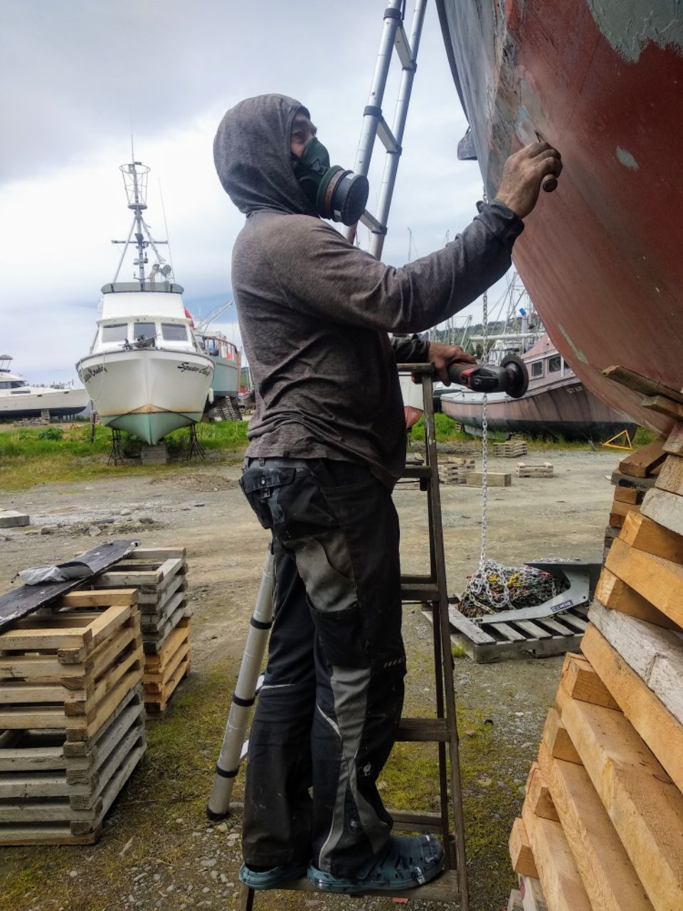 Auf dem Boatyard ist richtig viel los. Alle Fischer wollen ins Wasser, denn jetzt beginnt die Zeit, in der das Geld verdient wird. Es wird sogar während der Nacht gekrant, denn die Kachemak Bay ist stark tidenabhängig, und es gibt nur wenige Stunden genug Wasser um die Rampe herum.