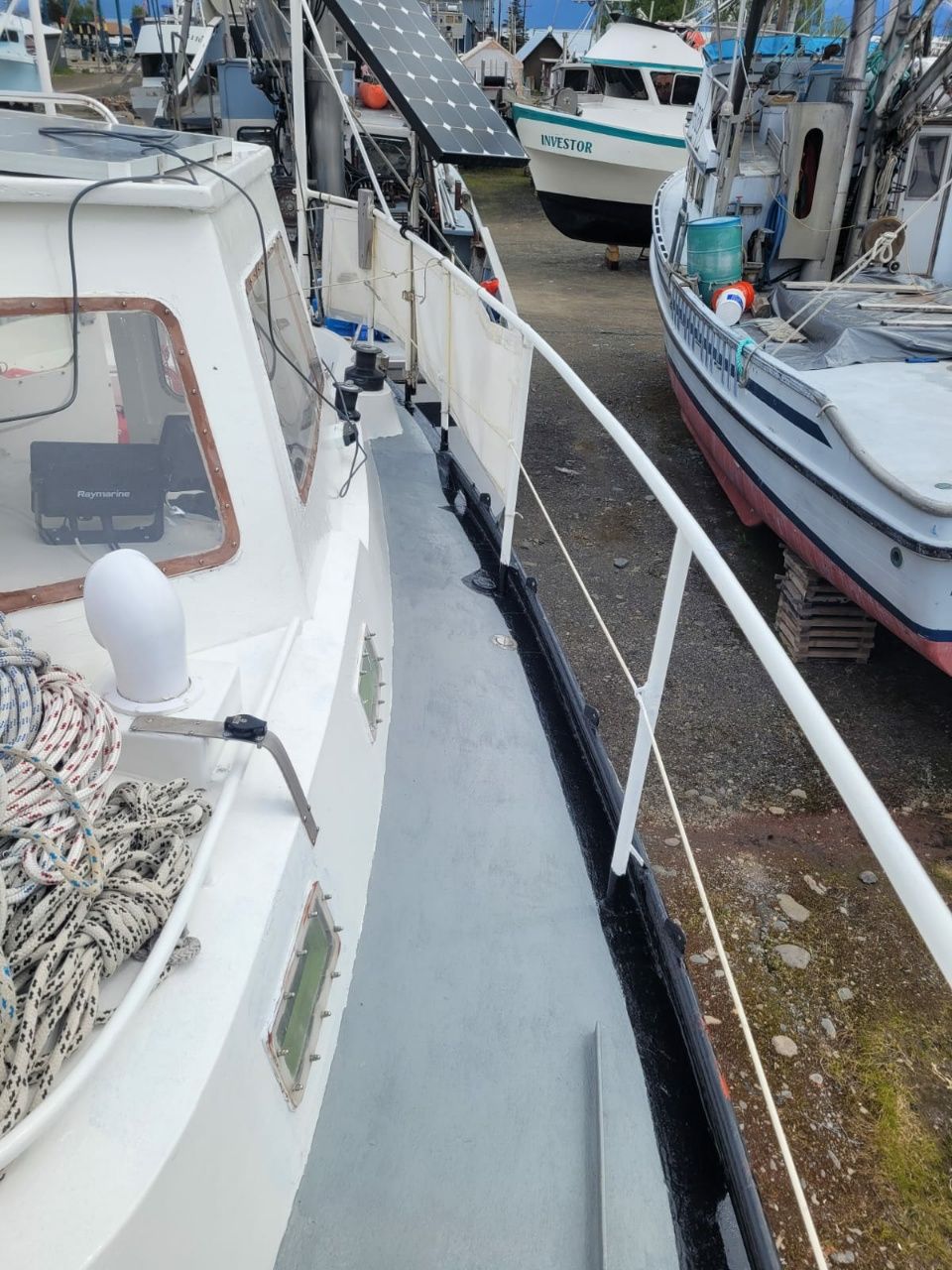 Auf dem Gelände hat Bernie seine Werkstatt. Ein begnadeter Handwerker, der einfach jeden Kundenwunsch erfüllt. Wir haben keinen großen Auftrag, für uns verlängert er nur den Hebel der Ankerwinde. Es ergibt sich ein nettes Geplauder, und einen Abend laden wir ihn auf die Walkabout ein. Bernie ist ein Schweizer, der vor 30 Jahren mit seinen Eltern ausgewandert und in Alaska hängengeblieben ist. Wieder eine interessante Begegnung, die wir in guter Erinnerung behalten werden.