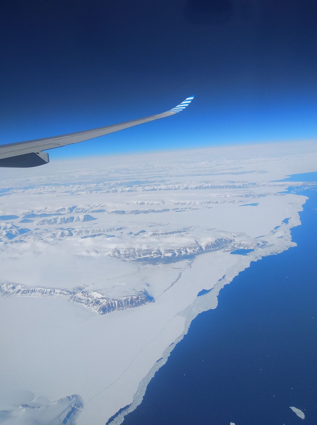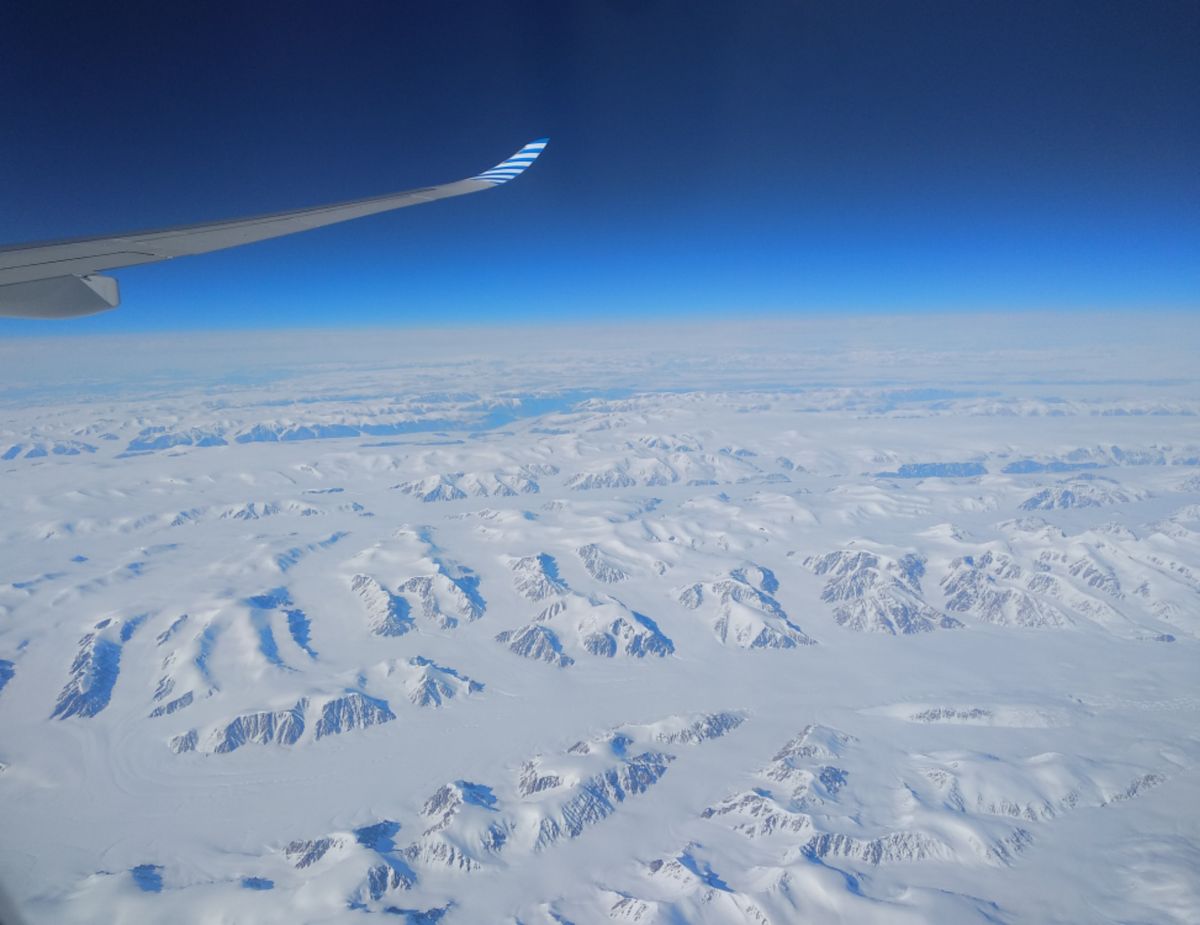 Eine Woche später ist die Crew komplett. Die Reise bis nach Homer in Alaska ist umständlich und nicht ganz billig. Insgesamt 3 Tage bin ich unterwegs, aber genieße jeden Augenblick. Beim Flug über Grönland bieten sich atemberaubende Ausblicke auf die verschneite Landschaft. Auf dem Monitor kann ich unseren Weg verfolgen. Wir überfliegen die Nordwest-Passage. Ich erkenne viele markante Wasserstraßen, Inseln, Kaps und Orte unserer Route vom letzten Jahr.