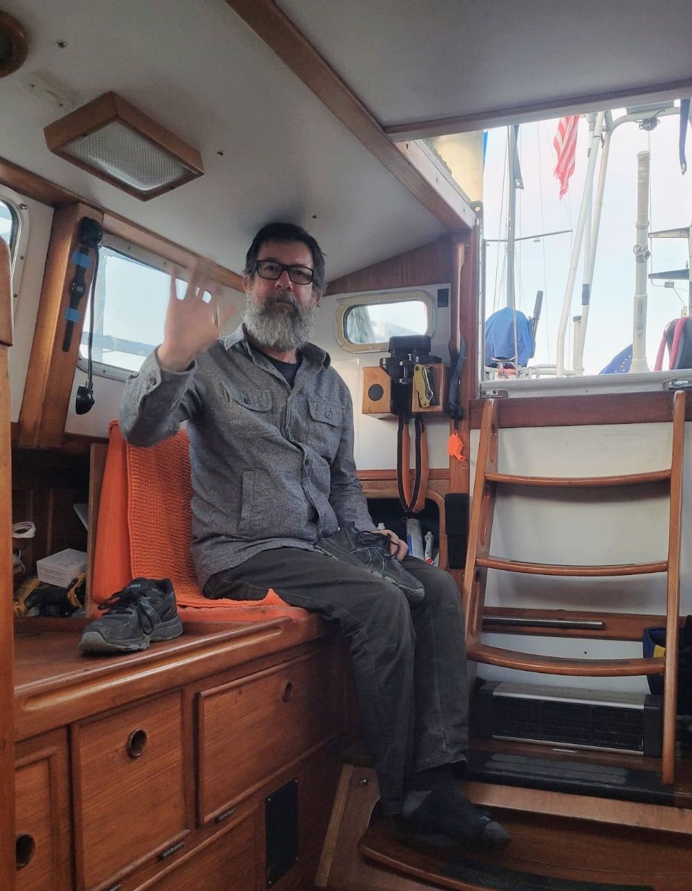 Und schon wieder Besuch, zuerst Heike mit Kim, etwas später sitzt Randall bei uns im Salon. Die Menschen, die in dieser Einsamkeit leben, sind sehr gesellig, wenn es passt.