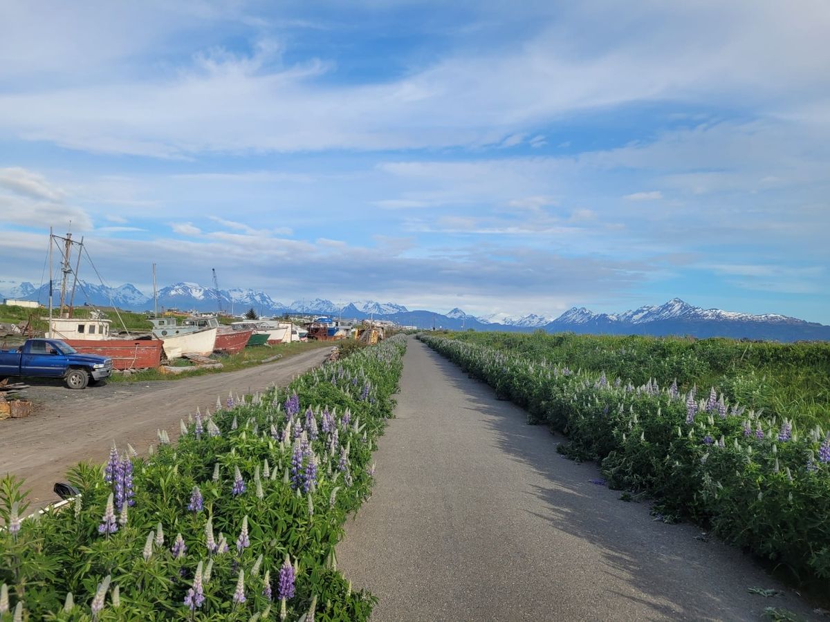 Von Anchorage bis Homer sind es 360 Kilometer weiter über Land. Darauf habe ich mich besonders gefreut, denn wir kennen ja immer nur die Hafen-Perspektive, also was im nahen Umkreis vom Anleger oder Ankerplatz ist. Eine 5-stündige Fahrt mit der Alaska Bus Company ist ideal zur Einstimmung auf die kommenden Wochen. Busfahrer Ian ist richtig cool, er hat für Jeden ein freundliches Wort. Ich kann mich gar nicht sattsehen an der Landschaft. Es ist grün ! Auf den Bergen ringsum liegt Schnee, aber die Wiesen, Büsche und Bäume sehen nach Frühling aus. Thomas bekommt den Wagen von Randall ausgeliehen, um mich abzuholen. Neben der Walkabout steht Jack mit seinem Boot, der ist auch immer nett und hilfsbereit. Tolle Menschen um uns herum. 🙂