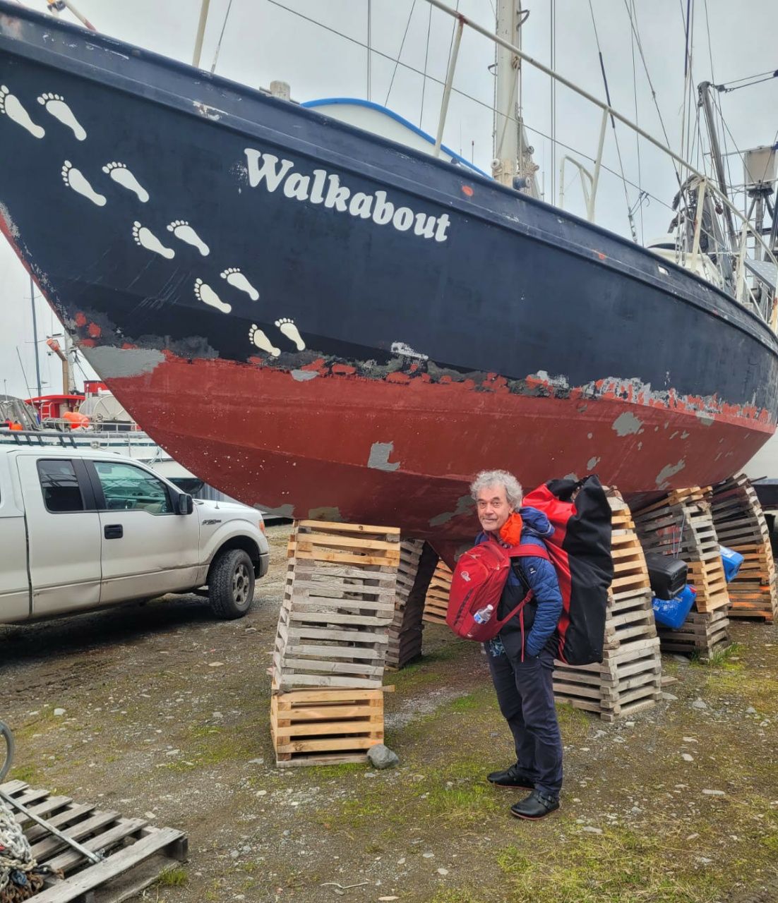Der Käpt’n kommt am 31.05. bei der Walkabout an. Unser Boot hat den Winter in Alaska gut überstanden, auch wenn es auf den ersten Blick etwas traurig aussieht. Die Farbe fällt mal wieder ab, das ist ja nichts Neues. Ansonsten keine Frostschäden. Mehr als 6 Monate waren wir getrennt, haben uns während dieser Zeit nur insgesamt 3 Wochen gesehen. Endlich ist es soweit !