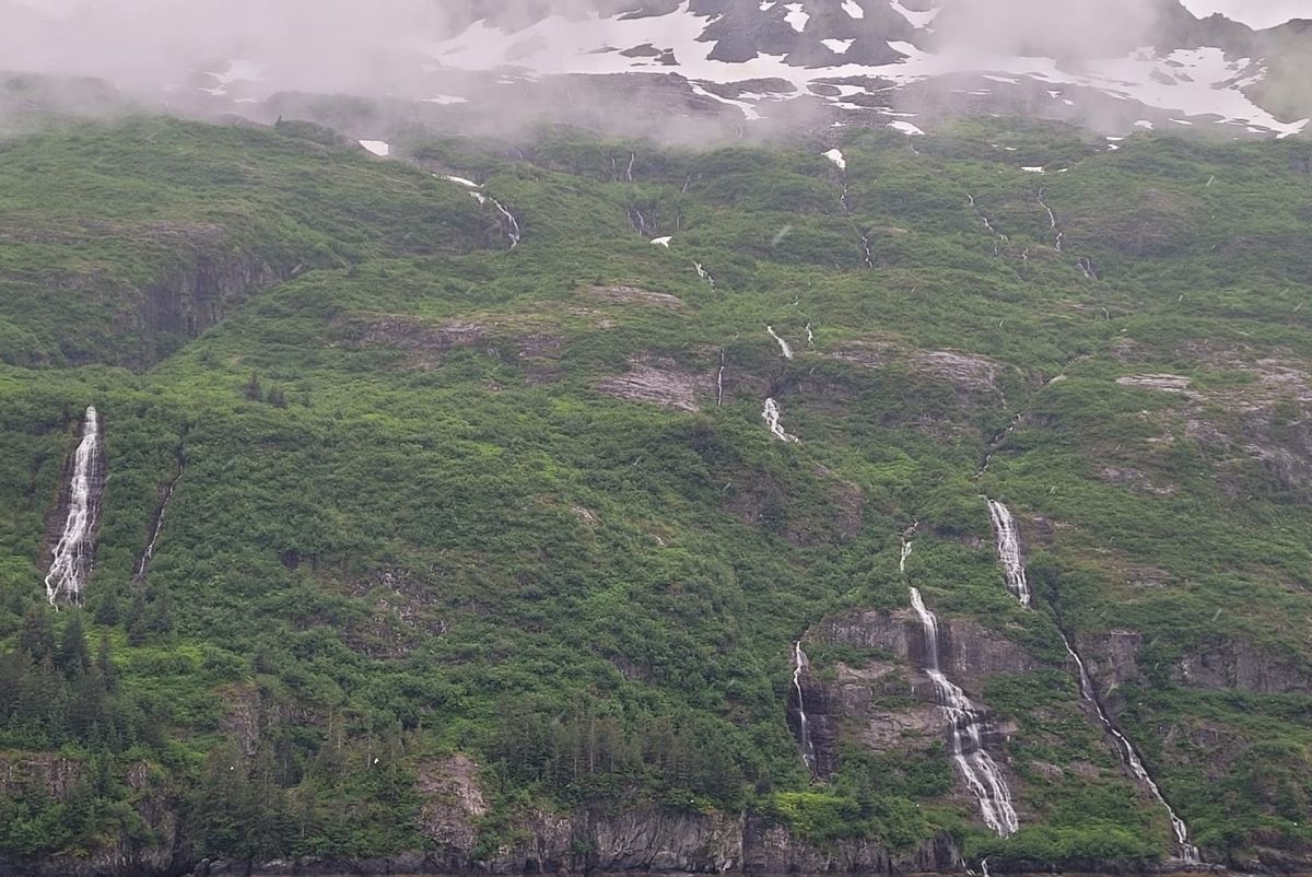 Am späten Nachmittag erreichen wir Quicksand Cove, das wird unser Zwischenstopp auf dem Weg zum Aialik Gletscher. Anker fällt in 12 Meter Tiefe vor einem Strand, in den ein Fluss mit Süßwasser mündet. Vielleicht finden wir hier die Lachse ? Ringsum spektakuläre Landschaft mit schroffen Bergen, von denen mehrere Hundert Meter hohe Wasserfälle in die Tiefe stürzen. Fantastisch ! Was für ein toller Tag ! 🙂