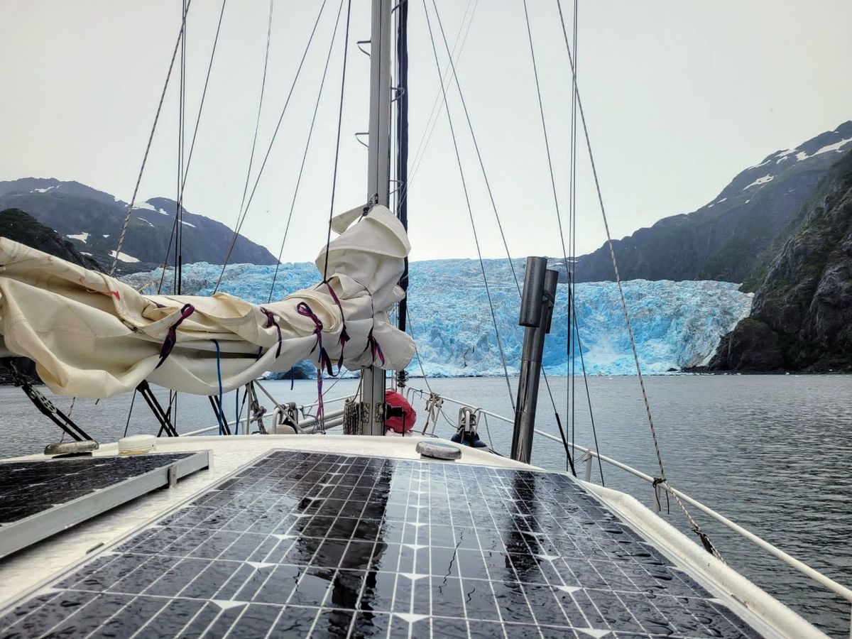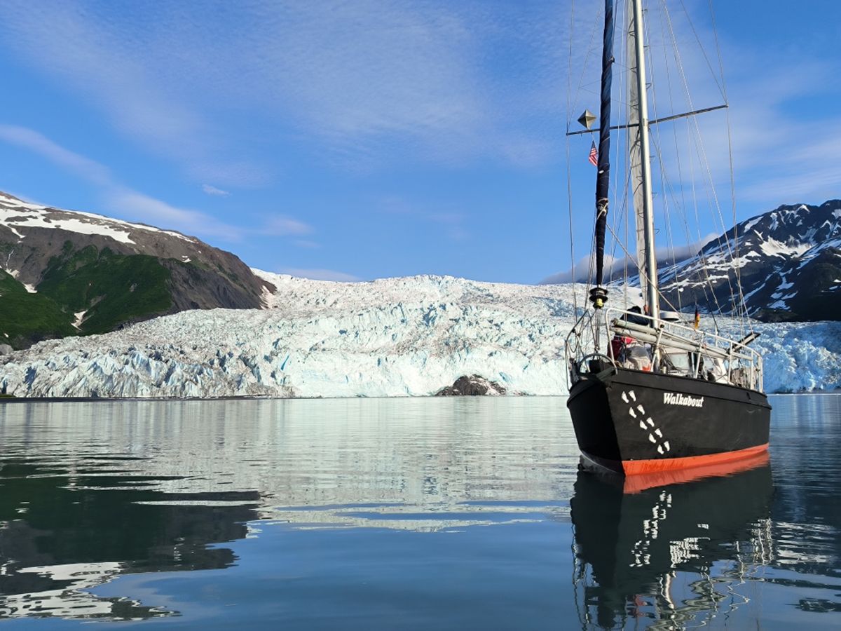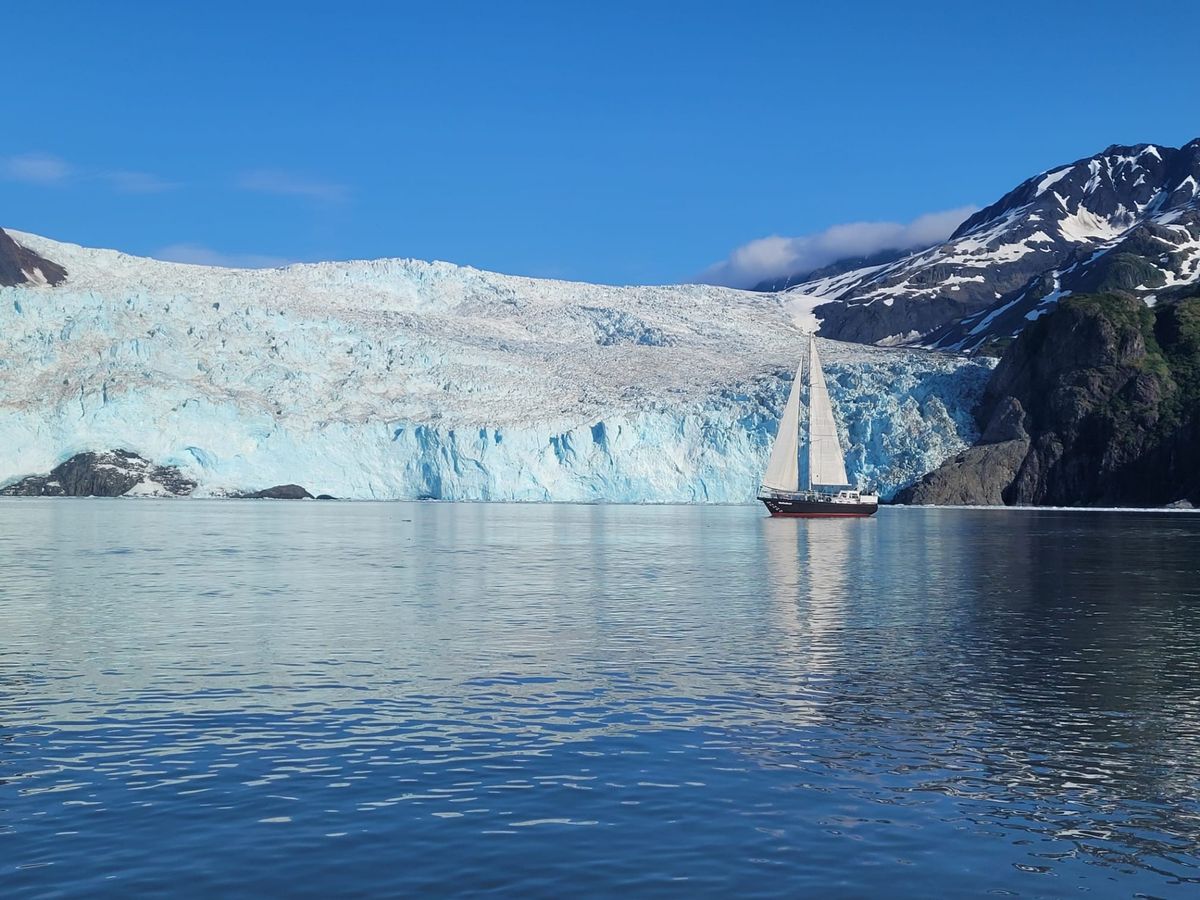 Wir ankern mit Blick auf den Aialik Gletscher, den wir morgen früh aus der Nähe betrachten können.