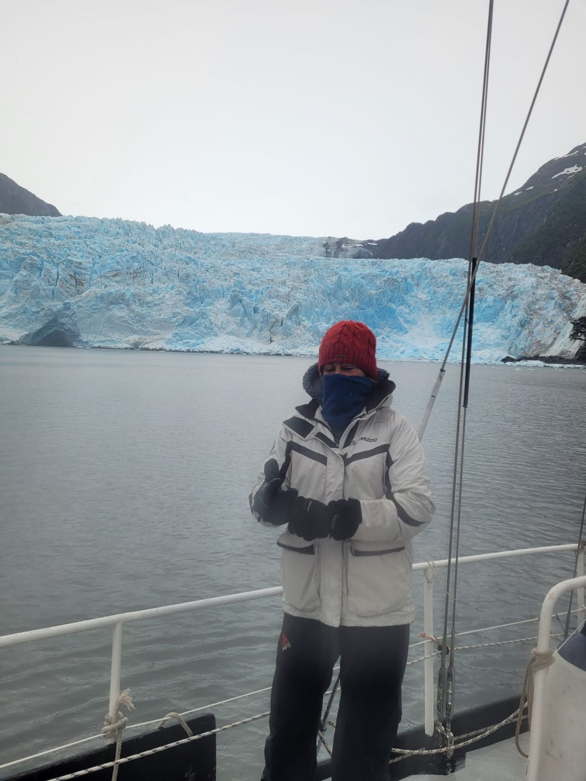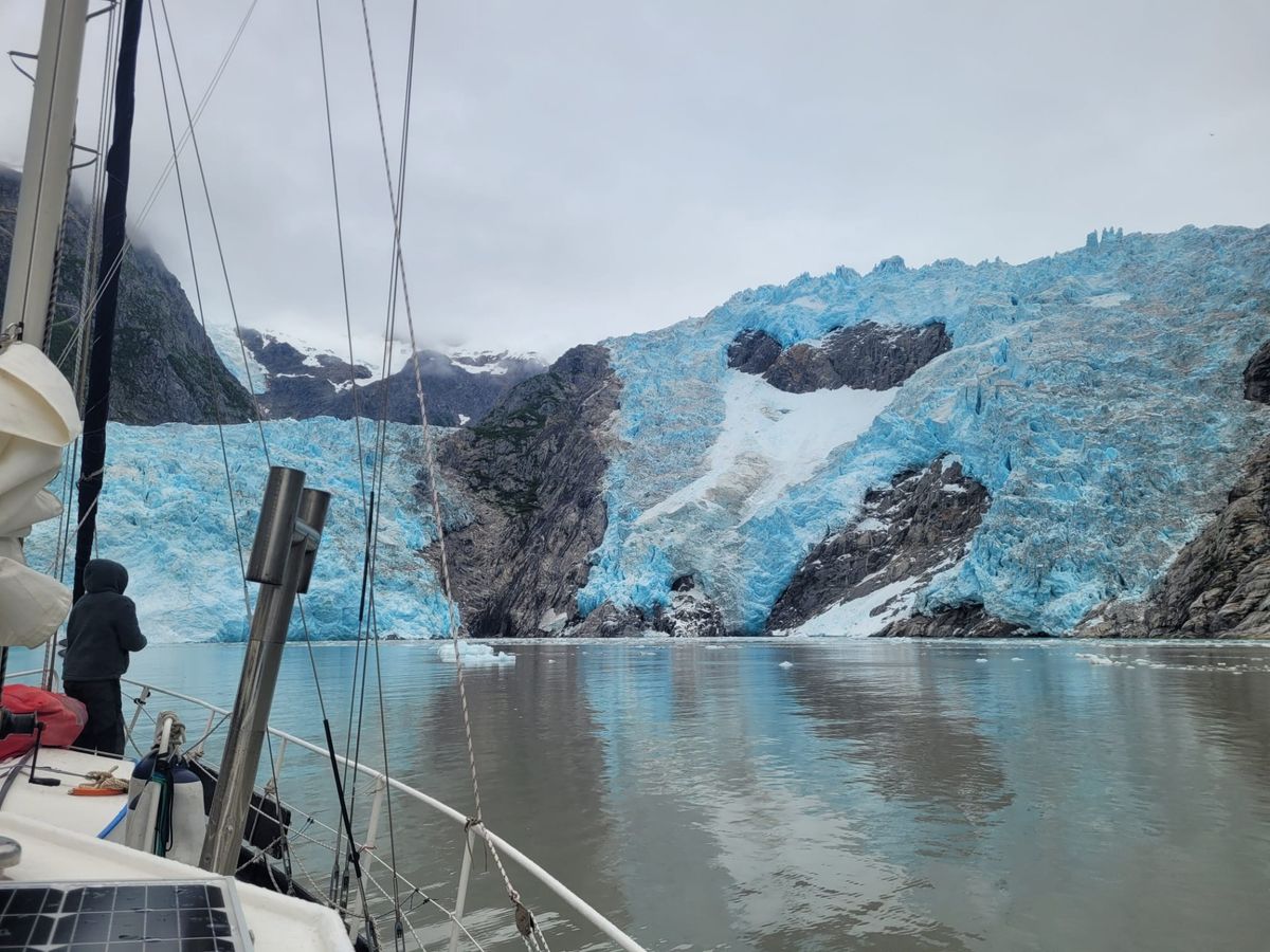 Nicht spektakulär, kein hellblau-weißes Farbenspiel wie gestern, einfach nur eine kompakte Wand aus Eis. Vielleicht liegt es aber auch am trüben Wetter heute. Trotzdem ganz nett. Der Holgate liegt quasi auf dem Weg, nur insgesamt 10 Seemeilen mehr.