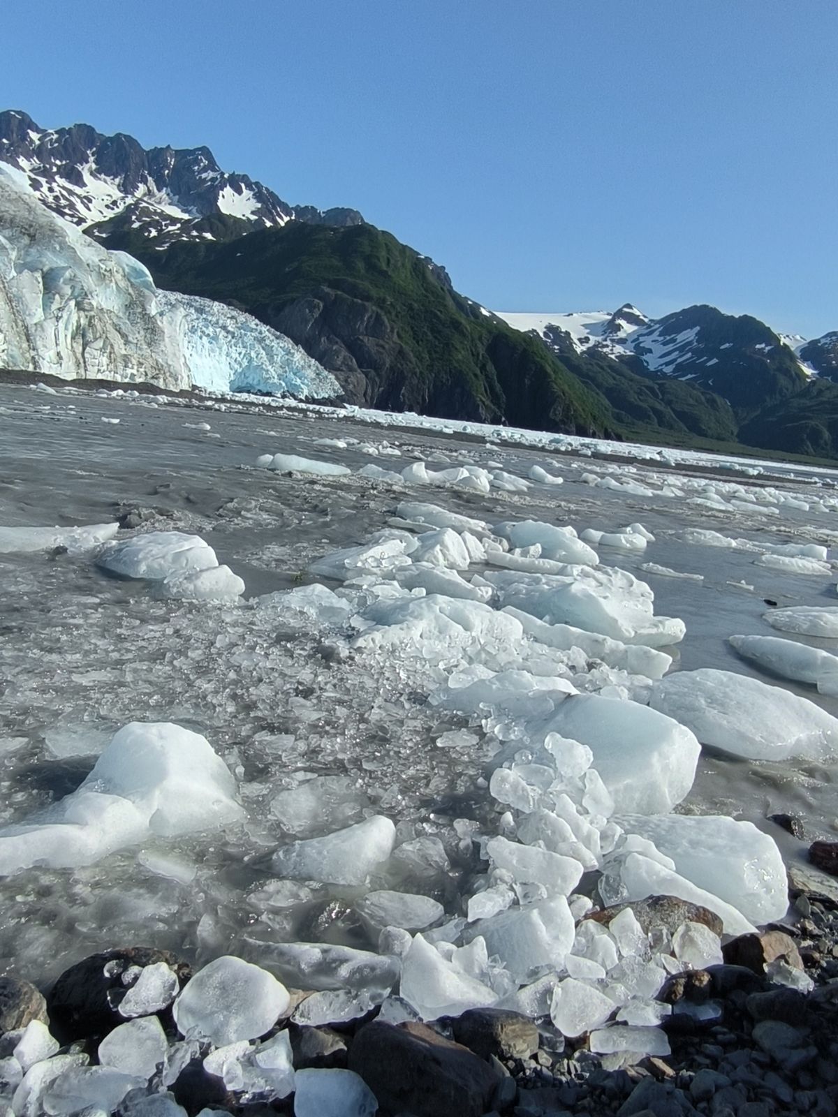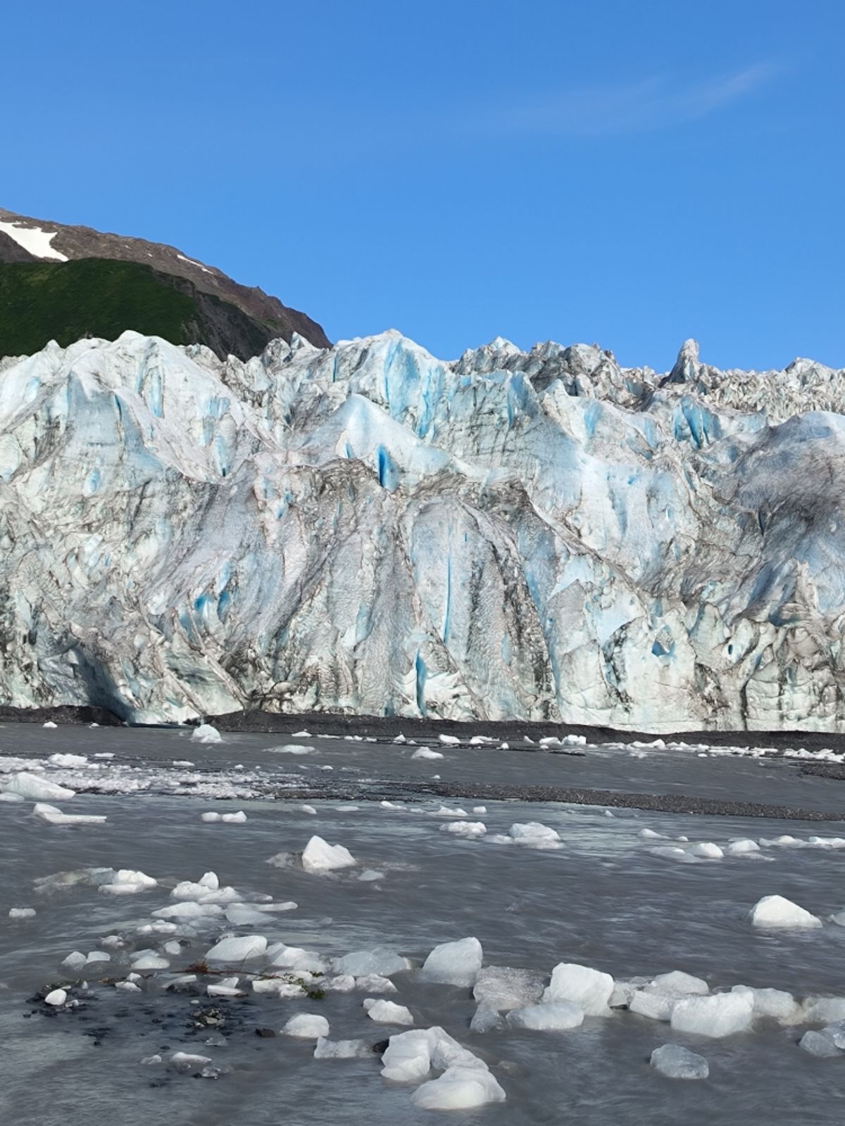 Der Holgate Gletscher ist 8 Kilometer lang und etwa 1,5 Kilometer breit. Er wird vom Harding Icefield gespeist. Kein Eis kommt uns entgegen, keine Silbermöwen und keine Seehunde sind zu sehen. Alles ganz anders als beim Northwestern Glacier.