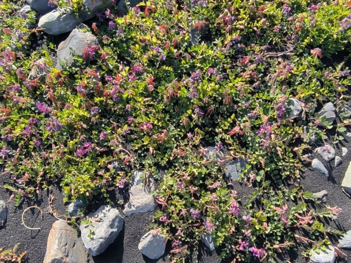 Ein lautes Donnern ertönt aus dem Gletscher, kurz darauf folgt ein besonders großer Abbruch. Wir beobachten mit Sorge, wie sich eine kleine Tsunami-Welle immer mehr ausweitet. Das Wasser zieht sich zunächst vom Strand zurück, es wird praktisch weggesaugt. Hoffentlich wird nicht zu viel Wasser unter der Walkabout weggezogen, die gar nicht so weit weg am Anker schaukelt. Die Welle flacht kurz vorher ab, unsere Sorge war unbegründet. Erstaunlicherweise wachsen bunte Blumen am Strand. Faszinierend. Die zarten Pflänzchen haben sich mitten in dieser Stein- und Kältewüste durchgesetzt.