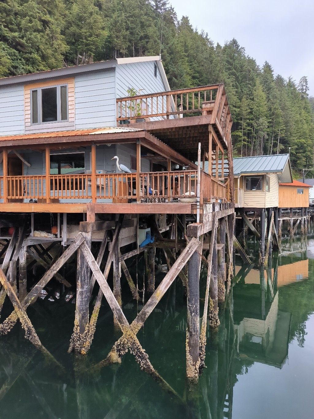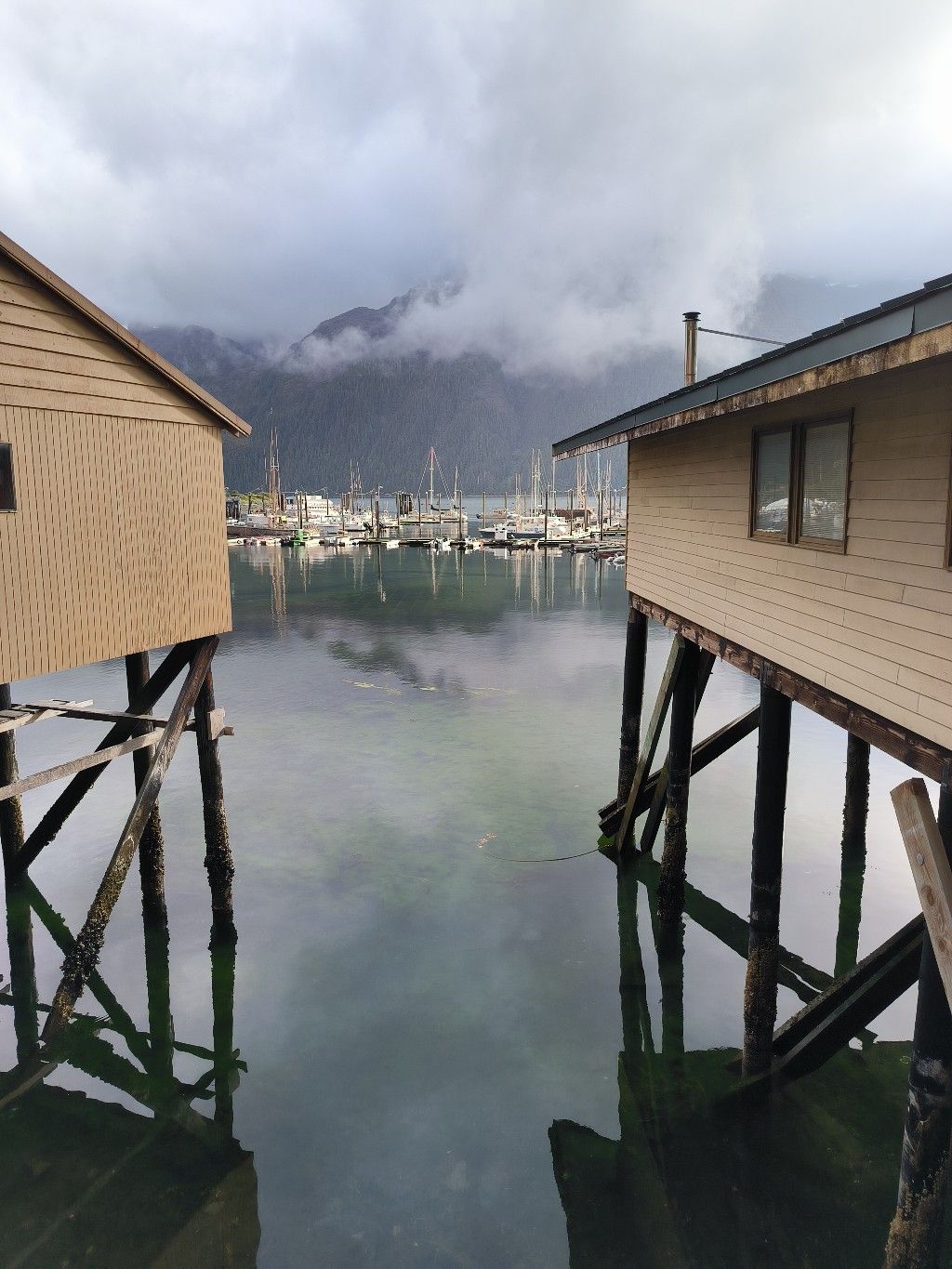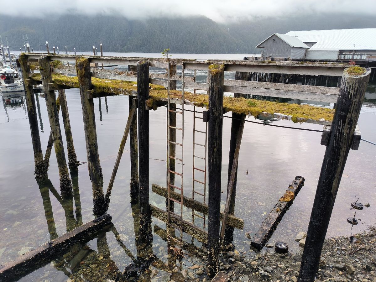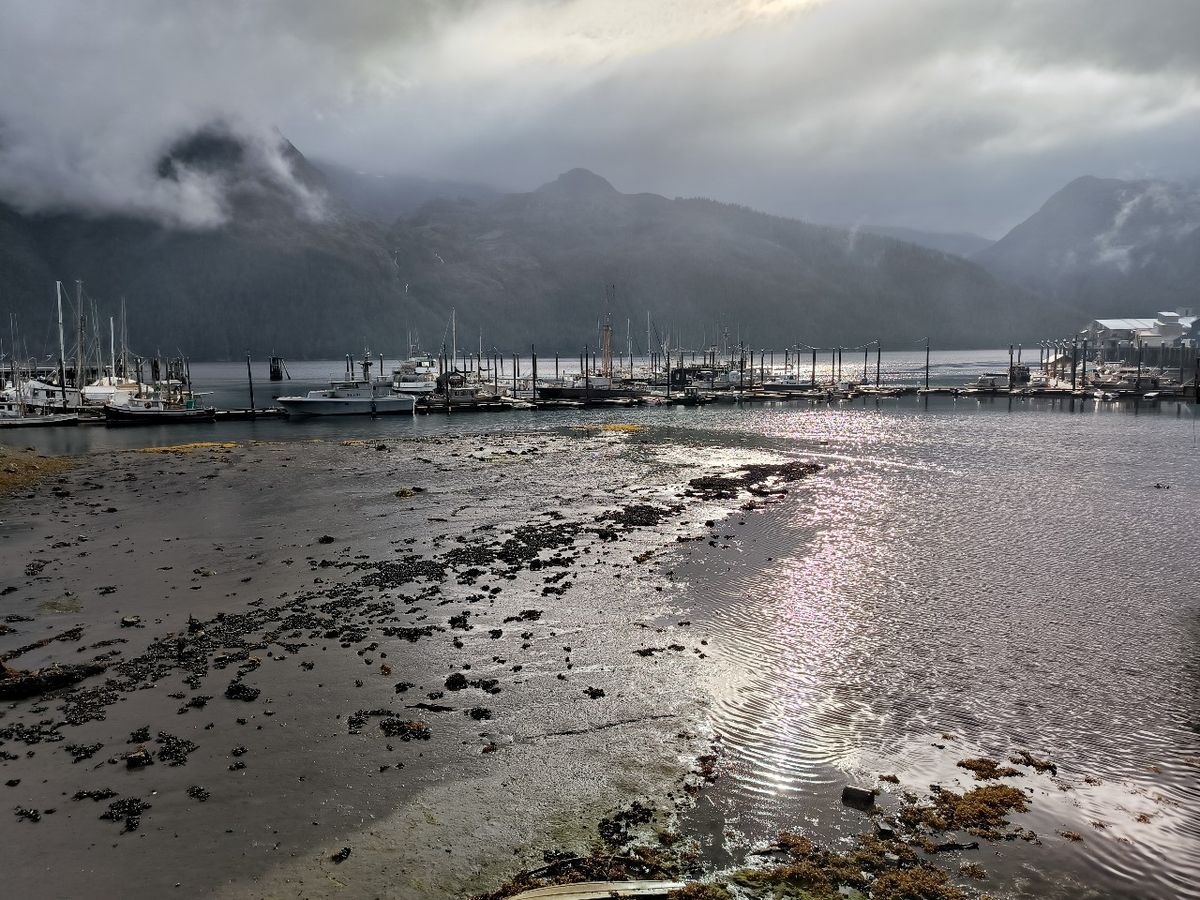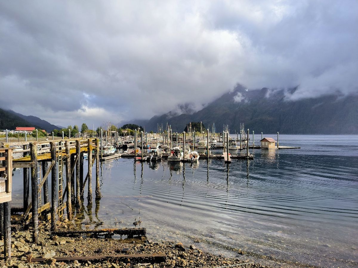 Pelican ist für uns nicht besonders attraktiv. Elfin Cove hat mir viel besser gefallen. Wir kaufen nur ein paar Kartoffeln und Eier im kleinen Laden für 15,- $. Natürlich gibt es auch einen Liquor Store, wie in fast jedem Dorf. 12 Dosen Bier kosten wahnsinnige 30,- $. Am Steg müsste man eigentlich Liegegebühr bezahlen, aber die sparen wir uns, indem wir nach 2 Stunden wieder abhauen. Es geht nur einmal kurz um die nächste kleine Insel zum Ankern.