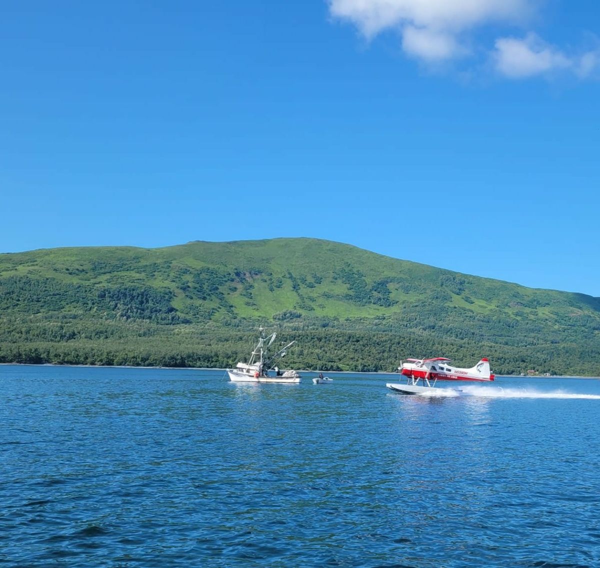 Larsen Bay hat ca. 90 Einwohner und ist nur per Boot oder Flugzeug erreichbar. Nach 2 ruhigen Nächten in der allerletzten Ecke verholen wir das Boot in Richtung Dorf. Ein Wasser-Flugzeug landet ganz nahe bei der Walkabout. Wir besuchen Troy in seiner Werkstatt bei der Fischfabrik. Scott, ein Kollege von Troy, schenkt Thomas einen ganz besonderen Fischköder. Angeblich soll man damit Kabeljau aus großer Tiefe heraufholen. Erstaunlicherweise ist es nicht so geschäftig, wie wir erwartet haben. Nur 12 Mitarbeiter, die den Laden am Laufen halten und sich um das Nötigste kümmern. Grund dafür ist, dass die Lachse in diesem Jahr spät dran sind und andere Wege schwimmen. Es wird nur wenig Fisch angeliefert. Dafür lohnt sich der Betrieb nicht, sondern die Ware wird mit einer Art Fähre verschifft und in einer anderen Fabrik verarbeitet.