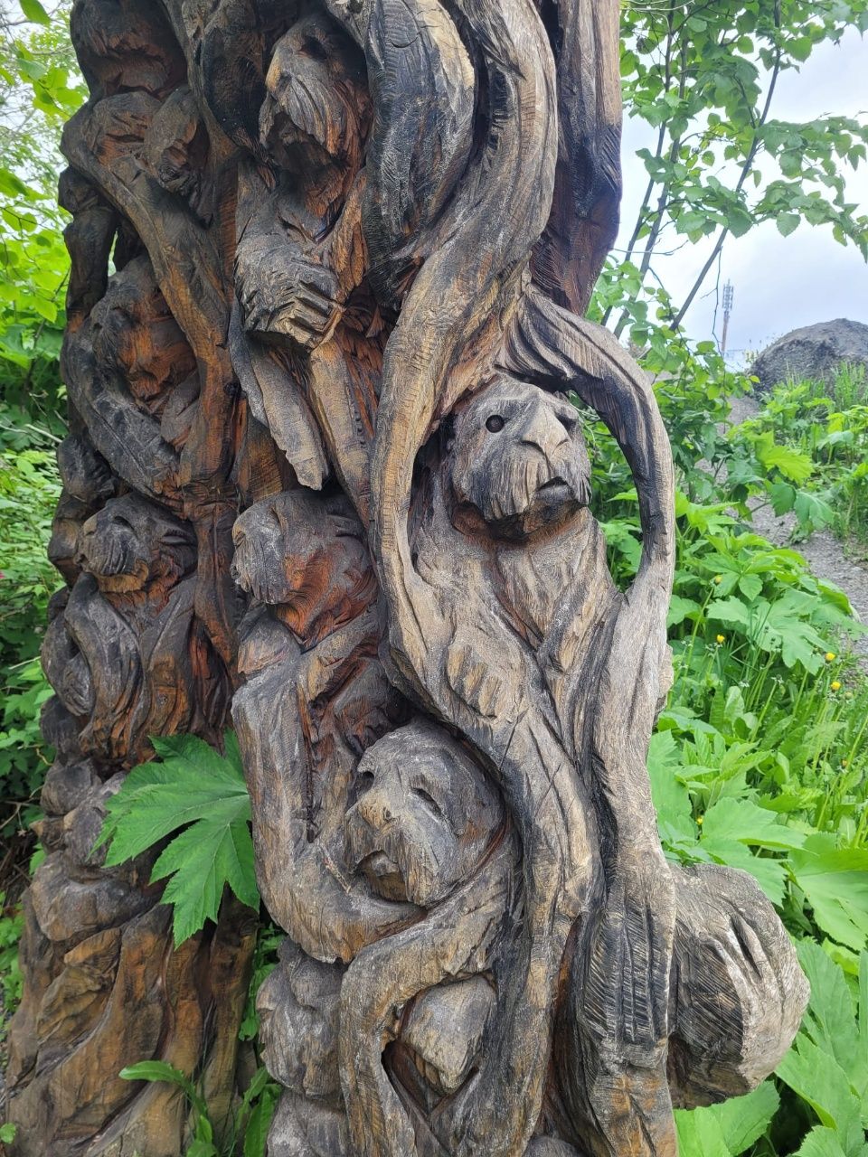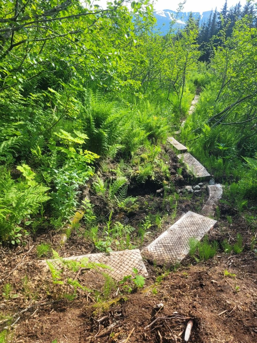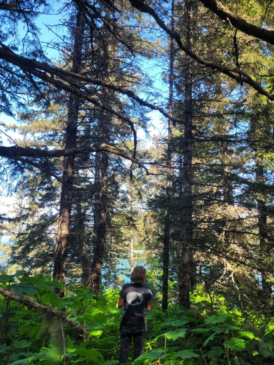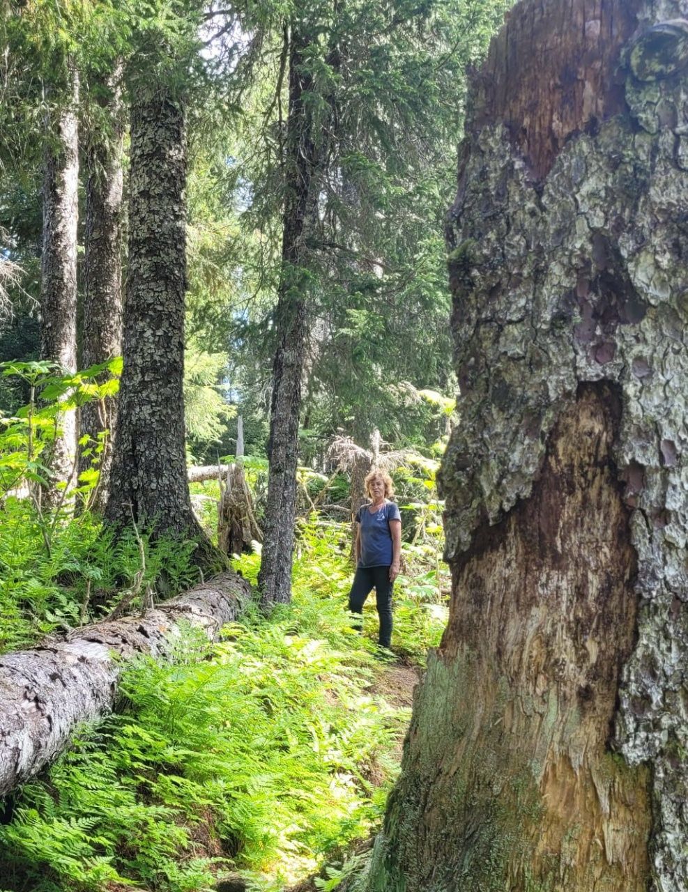 Vom Strand bis zum Dorf führt eine alte Forststraße durch den Wald. Unbefahren, offensichtlich unbegangen. Auf der anderen Seite gibt es eine Schranke und ein Verbotsschild ( nicht gesehen ). Auf jeden Fall sind wir ganz alleine ….. mit den Bären, die sich hier im Dickicht wohlfühlen. Wir sehen 4 stattliche Haufen auf dem Weg. Ach ja, wir sollten vielleicht das Bär-Spray mitnehmen …. Alles noch neu und ungewohnt, wir müssen uns erst wieder an das Leben in der Wildnis anpassen.