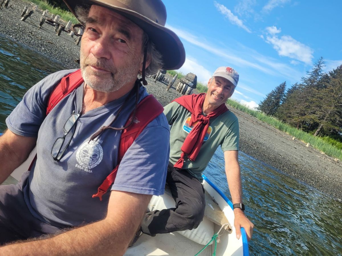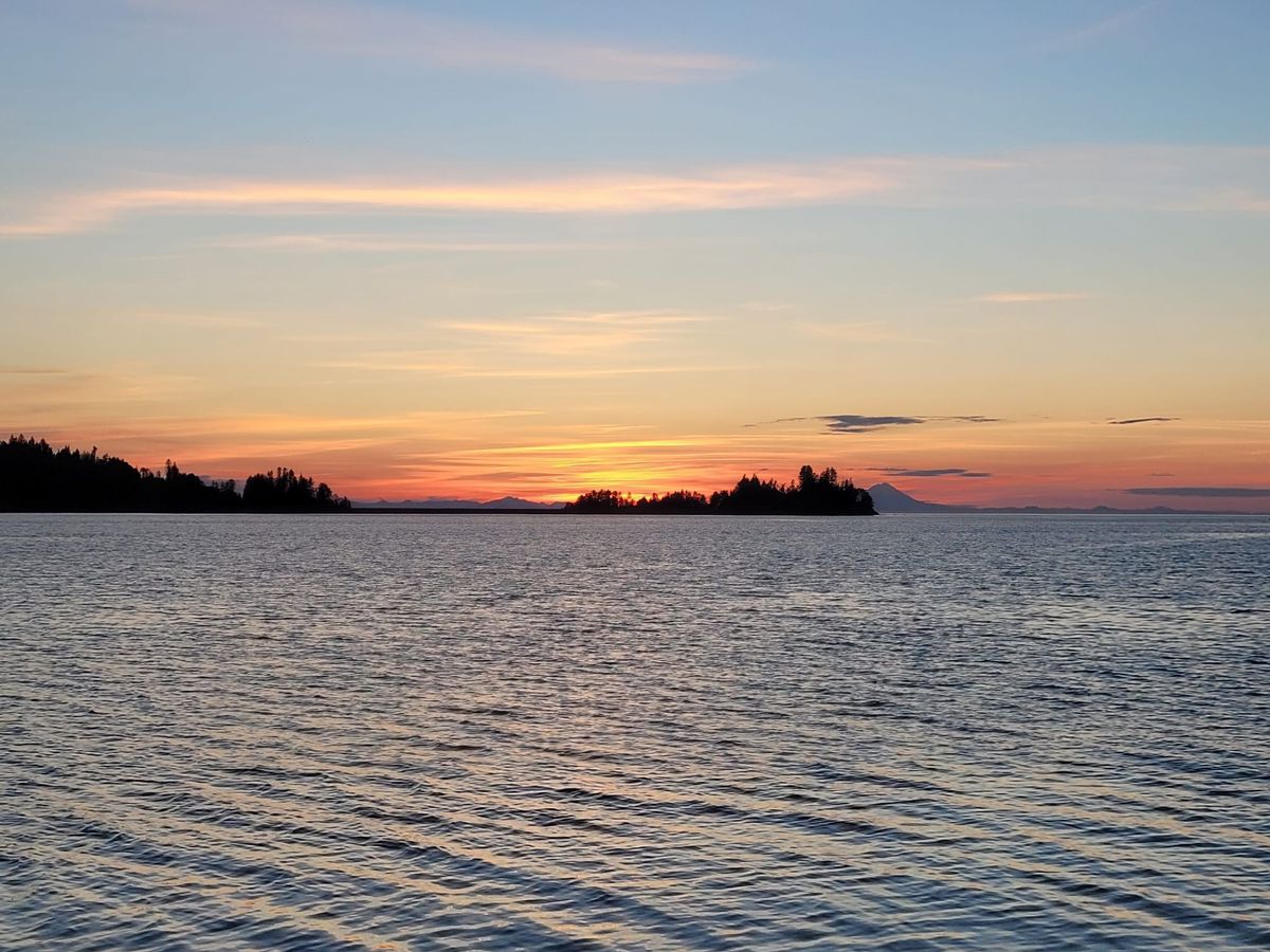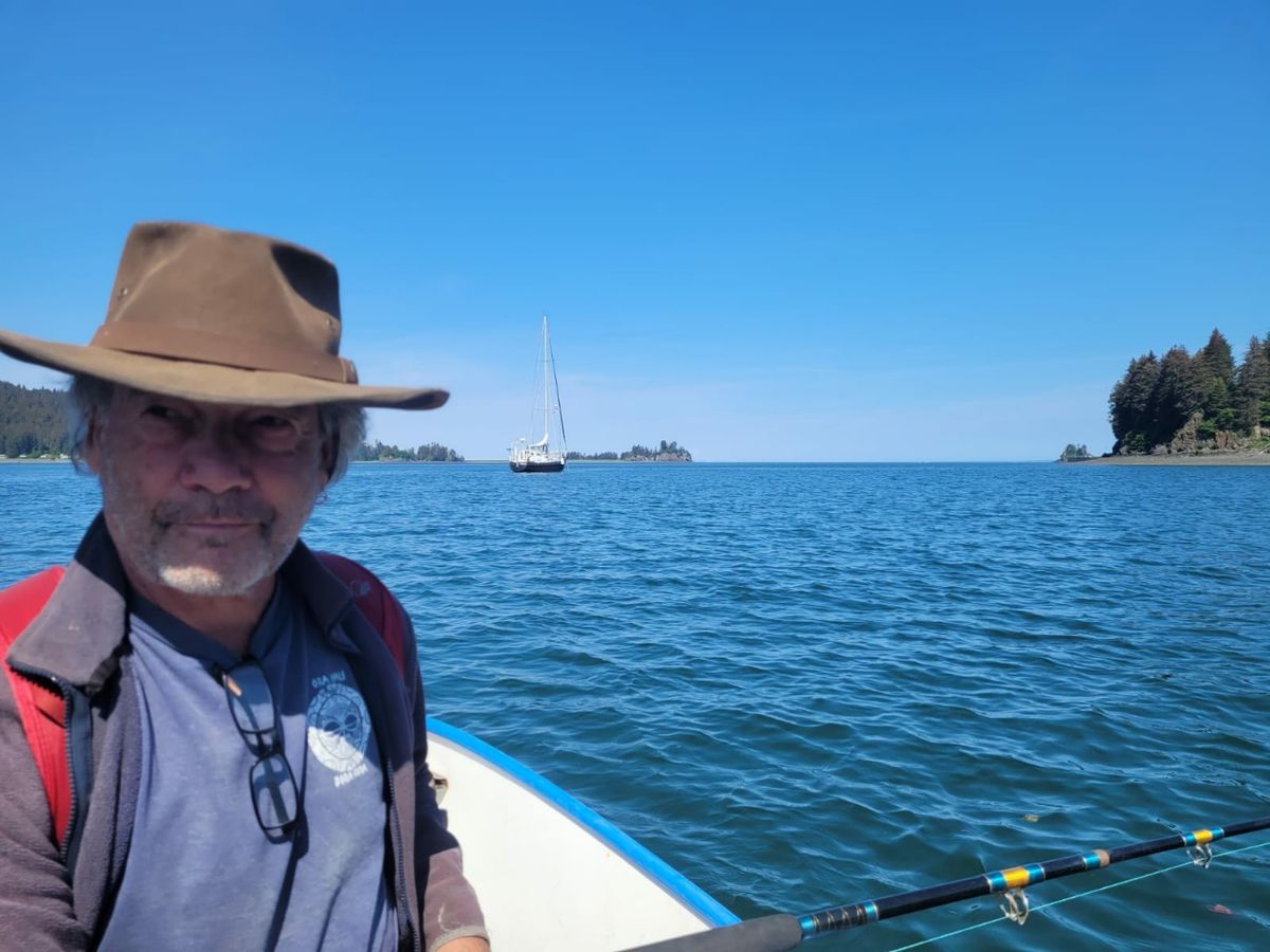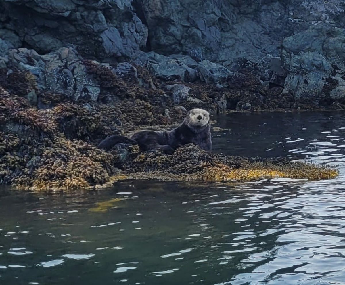 Wir beobachten ein kleines Nagetier, das im Wald herumwuselt. Es ist deutlich größer und rundlicher als eine herkömmliche Maus. „Bank Vole“ ist eine Wühlmaus. Die haben hier ein hartes Leben, denn sie werden von nahezu allen großen Vögeln und kleinen bis mittelgroßen Säugetieren Alaskas als Nahrung gejagt.Auf einer Baumspitze sitzt ein junger Weißkopf-Seeadler, der laut nach Futter schreit. Am meisten Spaß bereitet uns ein Seeotter, der sich auf den Felsen sonnt und dann ins Wasser abtaucht, sobald wir uns mit dem Dingi nähern. Er ist gar nicht scheu und bereitet uns eine lustige Vorstellung, indem er sich dreht und wendet, in der Sonne aalt, sich den Kopf kratzt oder die Augen reibt.