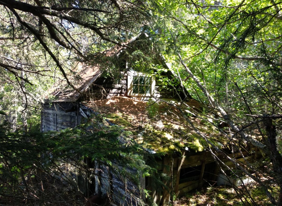 Am nächsten Tag paddeln wir mit dem Dingi hinüber zu einer kleinen Insel, die unbewohnt aussieht. Vom Strand aus wandern wir durch Wald und hüfthohe Farne einen Hügel hinauf. Dort entdecken wir ein verwunschenes Häuschen, welches an Hänsel & Gretel erinnert. Offensichtlich schon lange verlassen und so zugewachsen, dass es fast nicht mehr zu erkennen ist.