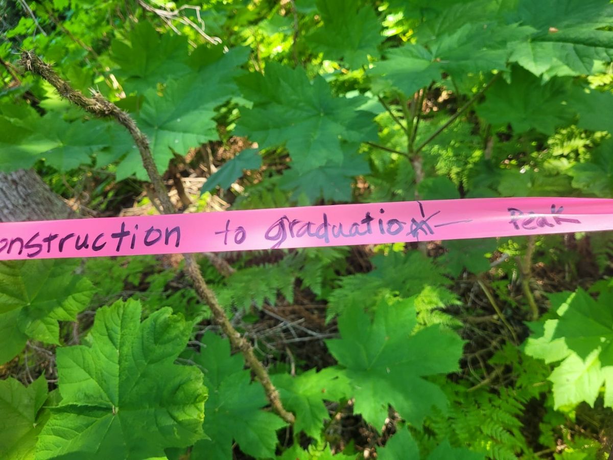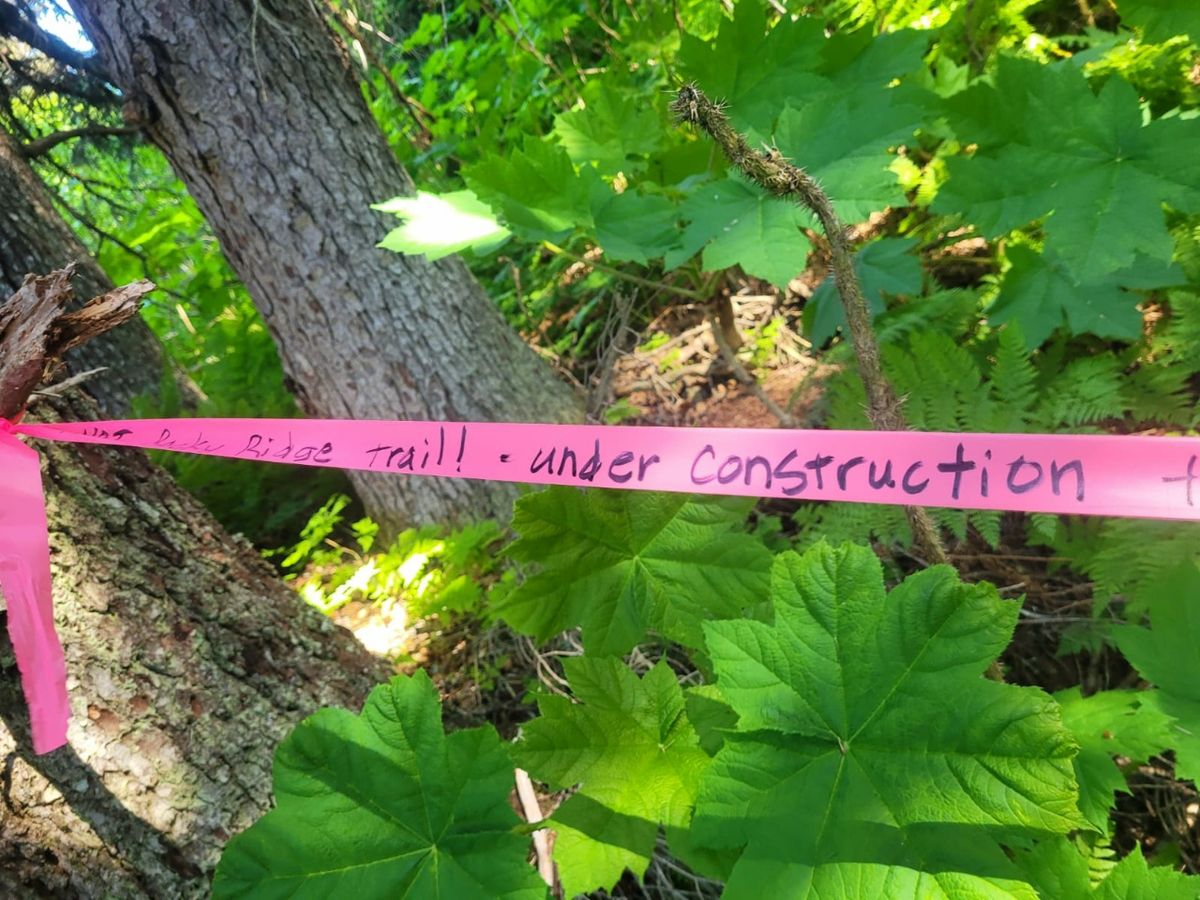 Wir möchten den Weg von vorgestern weitergehen und sehen, wo dieser endet. Dafür müssen wir zunächst dem Rocky Ridge Trail aufwärts folgen. Wir starten am South Trail Head, von dort aus geht es steil bergauf. An der Abzweigung flattert ein grell pinkfarbenes Band an einem Baum, auf dem steht geschrieben : „Das ist NICHT der Rocky Ridge Trail, dieser Trail führt zum Graduation Peak“. Ganz klar und deutlich und nicht zu übersehen. Na, toll – hätte das Band am Freitag schon hier gehangen, dann wären wir nicht über eine Stunde in die falsche Richtung gelaufen. Allerdings wäre dann auch gar nicht die Idee entstanden, dass wir diesem Weg bis zum Ende folgen möchten.