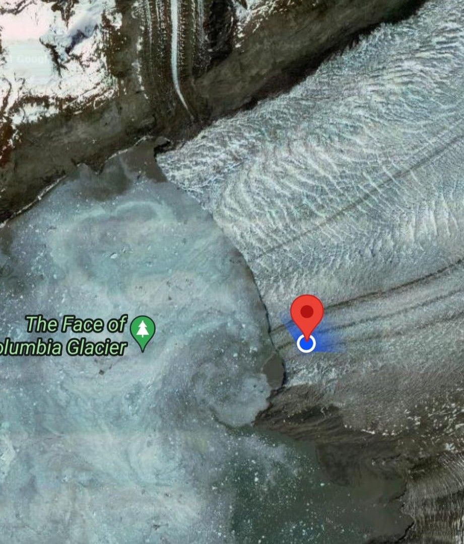 Thomas steht vorne, um mir die beste Richtung anzuzeigen. Sowohl C-Maps als auch Navionics sind zu Ende. Dieser Bereich ist nicht kartographiert. Wir fahren quasi über Land. Die Satellitenaufnahme bei Google Maps zeigt unseren Standort IM GLETSCHER an. Bis dahin haben wir schon 19 Seemeilen zurückgelegt, weiter wagen wir uns nicht an die Abbruchkante. Der Columbia Glacier hat sich seit der letzten Satellitenaufnahme schätzungsweise um 10 Kilometer zurückgezogen. Immer noch sind wir längst nicht an der Eiswand, aber näher möchten wir gar nicht ran. Im Inneren des Columbia Gletscher grummelt es nicht nur ein bisschen, sondern es donnert tief und unheimlich. Reicht. Wir stellen den Motor aus, lassen das Boot treiben und machen Mittagspause. Aber nur kurz, wir sind unruhig. Die Tide ist gekippt, und das Eis packt sich anscheinend zusammen. Besser, wenn wir verschwinden.