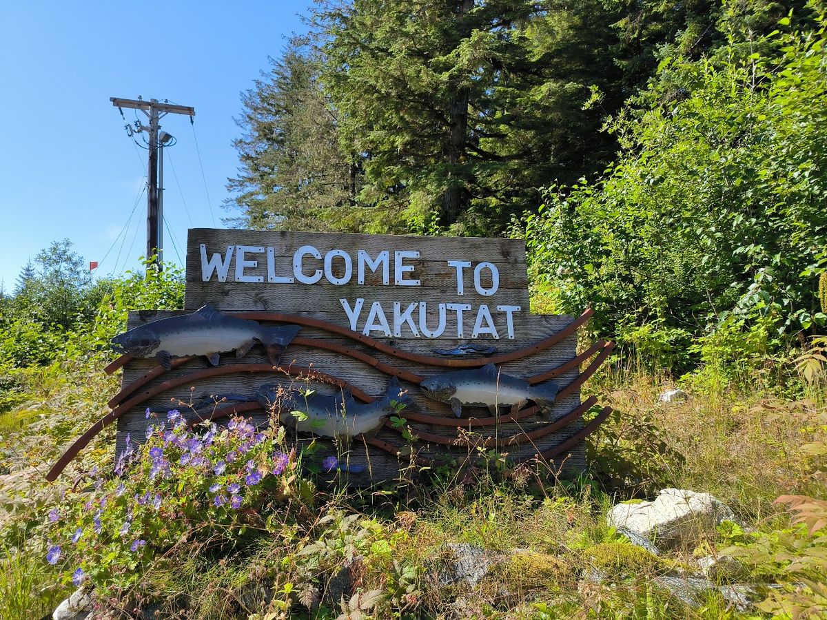 Gegen 8.00 Uhr früh erreichen wir die Einfahrt zur Yakutat Bay, eine 29 Kilometer breite Bucht, die im Nordosten von der Disenchantment Bay begrenzt wird. Hier gibt es heftigen Stromversatz und Wasser-Verwirbelungen. Wellen brechen am nahen Strand. Ein kurzer Angelstopp bringt eine dicke Scholle als Bereicherung unseres Speiseplans. Yakutat liegt am östlichen Ende der Monti Bay. Das Dorf hat ungefähr 660 Einwohner und ist nur per Boot oder Flugzeug zu erreichen. Der erste Ankerplatz, den die Coast Guard Pilot Charts empfehlen, gefällt uns nicht. Wir tuckern noch 2 Seemeilen weiter und ankern direkt vor dem kleinen Hafen. Damit haben wir nun einen etwas weiteren Fußweg zum Einkaufen, aber wir sind froh, wenn wir ein bisschen laufen können.