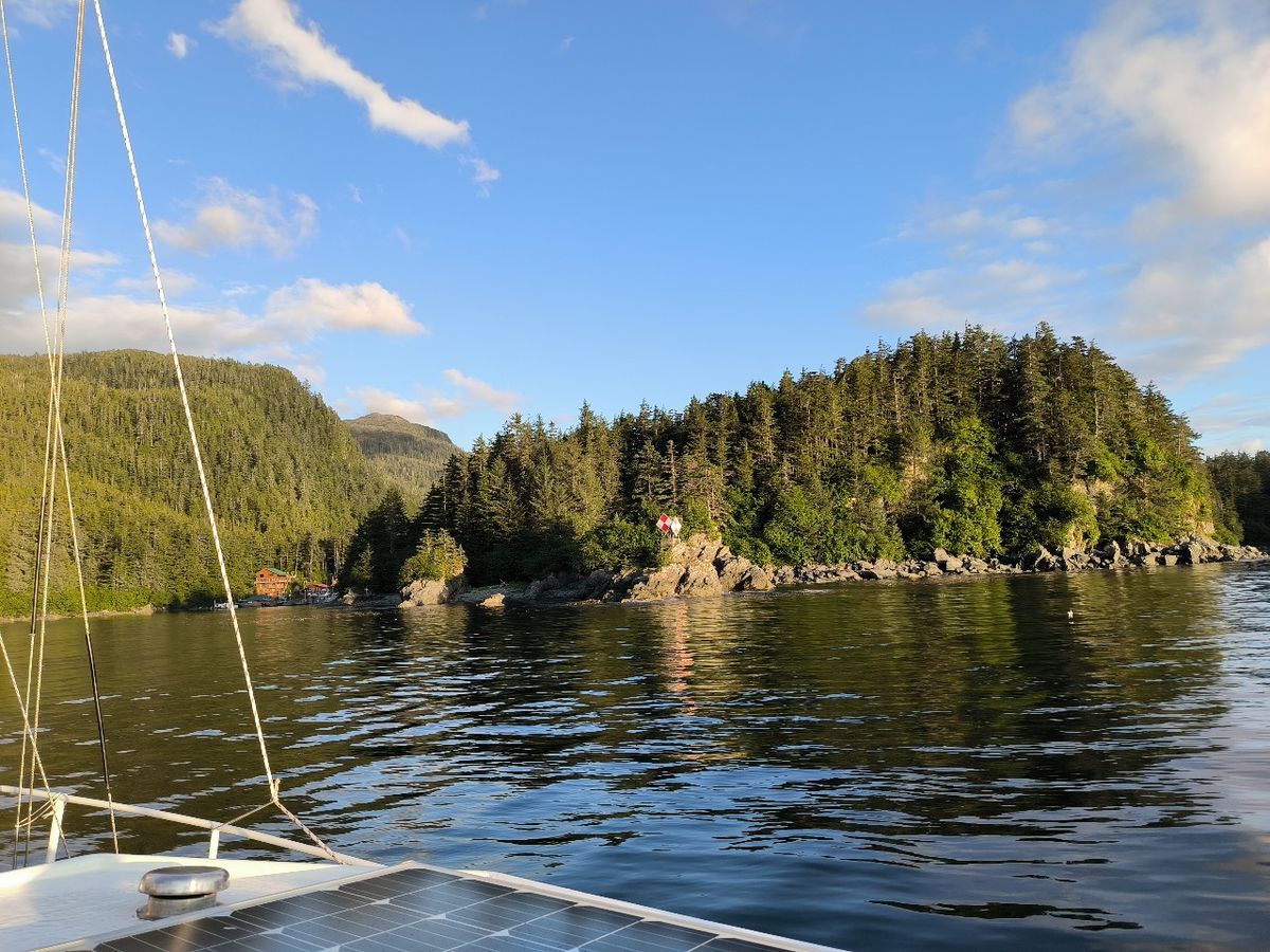 Am Nachmittag fummelt der Käpt’n einige Stunden an der Batteriekiste herum. Danach machen wir einen letzten Landausflug und laufen den Lagoon Trail gemeinsam bis zum Ende und zurück. Salmonberries, Brombeeren und Blaubeeren wachsen am Wegesrand. Hätte man eine Schüssel zum Sammeln dabei, dann würde das einen tollen Obstsalat oder Beerenkuchen geben. So wandern die reifen Früchte direkt in den Mund. Am Steg füllen wir noch ein paar große Kanister mit Wasser. Morgen geht es raus in den Golf von Alaska, zwei Tage und eine Nacht durch in Richtung Süd-Ost. Hinter Cape Spencer können wir in die innere Route einbiegen, wo wir geschützter sind. Der Herbst naht.