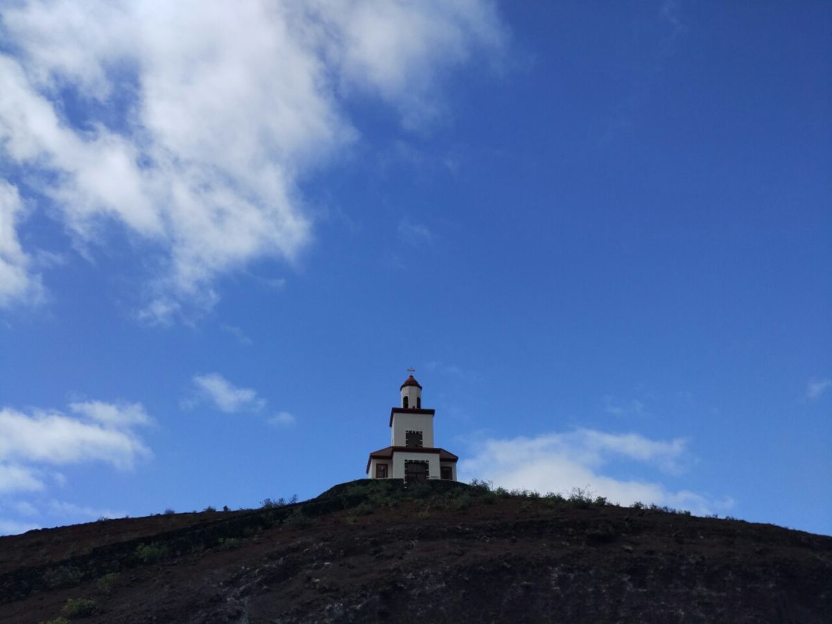 Ich beginne die Erkundung von El Hierro mit einem kleinen Tages-Ausflug in der näheren Umgebung. Nur zwei Stunden Fußmarsch weiter unten an der Küste liegt der Charco Azul zwischen den Klippen. Das Natur-Schwimmbecken wirkt bei Sonnenschein sicher schöner. Heute ist der Himmel bedeckt, und der Charco Azul präsentiert sich recht trist. Die auf einem Hügel stehende und weithin sichtbare Kirche zeigt mir den Rückweg nach La Frontera. Viel zu kurz war der Weg – ich brauche mehr Bewegung.
