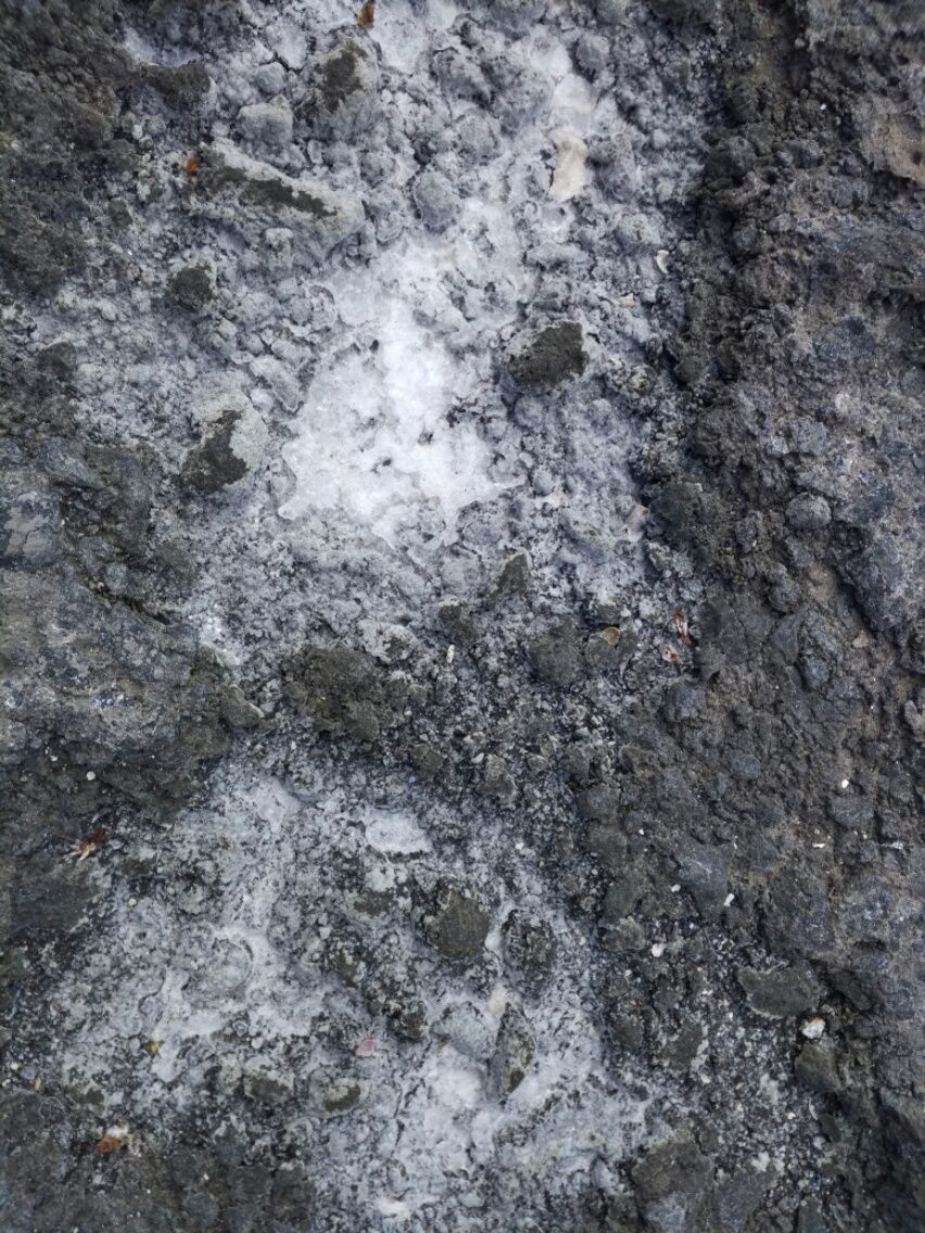 Um 19.00 Uhr ist es bereits zappenduster. Hauptsache, das Wasser steigt nicht zu weit, denn dann muss ich umziehen. Ringsherum gibt es einige getrocknete Pfützen, die aber auch von einem Hochwasser stammen können, das schon länger her ist. Die Sonne hat das Wasser verdunsten lassen, weiße Schichten aus Salz-Kristallen sind liegen geblieben.
