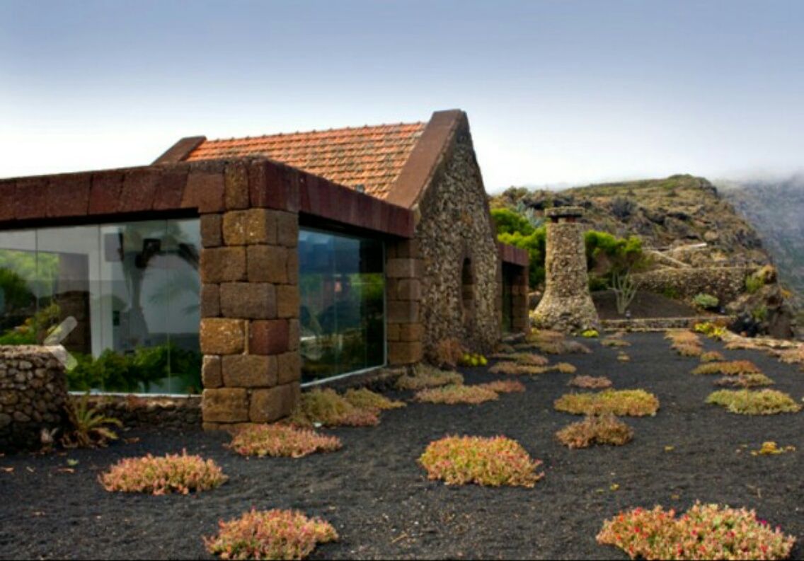 Alle langen Routen auf El Hierro sind abgewandert, eigentlich möchte ich nichts Wildes mehr unternehmen. Morgens früh ahne ich noch nicht, dass es doch wieder ein langer und kalter Tag wird. Ich fahre zunächst mit dem ersten Bus nach Valverde und nehme mir viel Zeit für einen Stadt-Rundgang. Immerhin 5.000 der insgesamt 11.000 Insel-Bewohner leben in der Hauptstadt. Der Wind ist frisch, aber hier scheint wenigstens die Sonne. Habe entlang der kurvenreichen Küstenstraße freien Blick auf den Atlantik und den Hafen Puerto de la Estaca. Phantastisch, wie die bunten Häuschen an die Felswand geklebt sind. Ich staune darüber, dass diese Bauweise am steilen Hang überhaupt möglich ist und noch mehr, dass diese Konstruktionen über viele Jahrzehnte zusammen halten. Ein Besuch in der besten Bäckerei der Insel muss sein, auch wenn der Laden ein gutes Stück weiter unten liegt. Ich kaufe alle Apfeltaschen, die es noch in der Auslage gibt, es sind ja nur vier Stück. Einzig und allein der Juister Bäcker kann einem Vergleich standhalten. Wer dort vorbei kommt, der sollte unbedingt den Bienenstich probieren. 🙂 Bei meinem Spaziergang entdecke ich den offiziellen Beginn des Camino de la Virgen. Nun ist es auch egal, ich habe mir meinen Weg erfolgreich selber gesucht. Der Mirador de la Peña lässt mir keine Ruhe. Einen Versuch werde ich noch wagen. Mit dem Bus möchte ich hochfahren in die Berge bis zum Dörfchen Guarazoca und von da aus weitersehen. Das wird spannend, denn ich habe keine Ahnung, wo ich aussteigen muss. Die Einheimischen im Bus tragen Wollmützen. Der Fahrer und die nette Frau neben mir helfen bei der Wahl der richtigen Haltestelle. Guarazoca ist schnell durchquert. Ich folge der Straße weiter in die Höhe, bis ich mehrere Autos auf einem Parkplatz sehe. Das muss es sein – und richtig. Ich habe den berühmten Mirador de la Peña endlich gefunden. Dieser Aussichtspunkt mit angegliedertem Restaurant wurde komplett von dem Künstler und Architekten César Manrique aus Lanzarote gestaltet. Das perfekt in die Umgebung eingebettete Gebäude aus rötlichem Lavagestein liegt zwischen terrassenförmig angelegten Gärten und beeindruckt durch seine riesigen Fensterfronten. Es wurde 1989 eröffnet und mittlerweile von der Kanarischen Regierung zum Kulturgut erklärt. Eine sehr gepflegte Anlage mit exotischen Pflanzen, mittendrin steht das schicke Restaurant mit einladend offenen Türen.