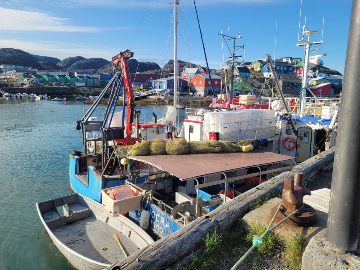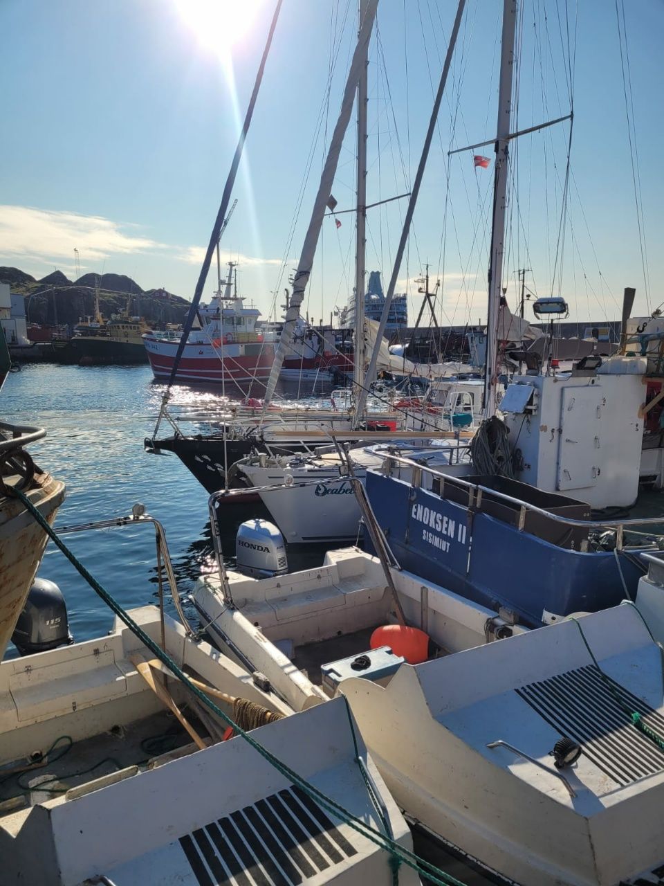 2500 Einwohner, bunte Häuser und angenehmes Klima. Wir sind begeistert von diesem Wechsel und froh, daß wir das graue Schlechtwetter-Nuuk gegen so einen hübschen Ort eingetauscht haben. Wir legen uns in die dritte Reihe neben zwei Fischerboote und hoffen, dass die Männer nicht um 4.00 Uhr in der Frühe zur Arbeit rausfahren.