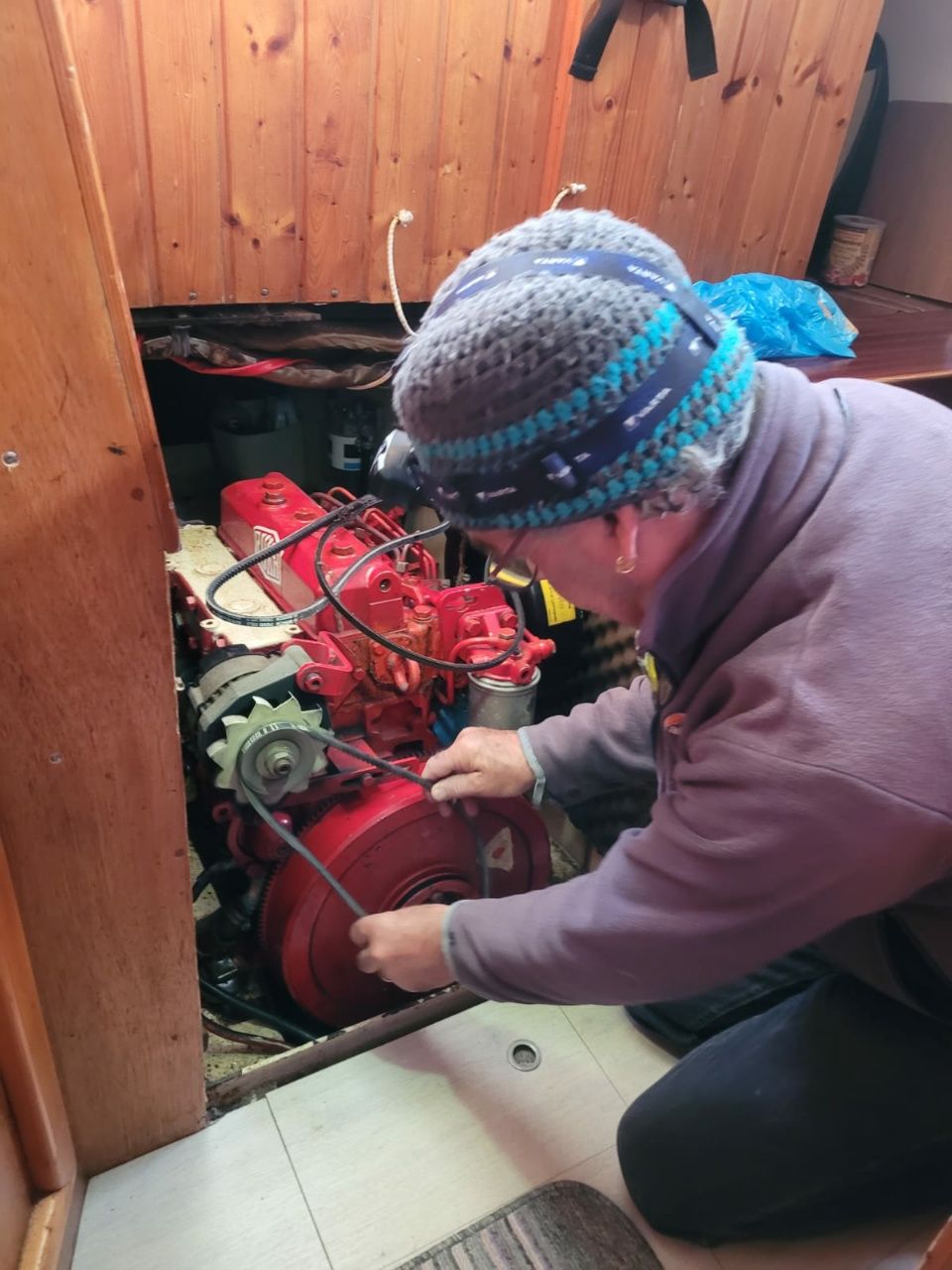 Thomas arbeitet derweil – wie meistens. Neuer Keilriemen wird montiert, Ölwechsel beim Motor, die Bilge wird leer gepumpt. Als ich auf dem Weg nach Hause bin, da winkt und ruft Gerd Hans freundlich zu mir rüber. Er hat noch irgendwo vier leere Diesel-Kanister für uns aufgetrieben. Eins der drei Fischerboote hat inzwischen abgelegt, diese Aktion habe ich verpasst. Der Weg ist dadurch nicht leichter geworden. Vorne kann ich nicht mehr auf die Walkabout übersteigen, weil die Boote jetzt anders liegen. Es erfordert eine halsbrecherische Turnerei, bis ich es achtern an Bord schaffe. Am Nachmittag kommen die Fischer noch einmal wieder und fahren uns direkt ans Heck, weil sie auf dem Nachbarboot etwas abladen müssen. Nichts für schwache Nerven. Das ist Millimeter-Arbeit.