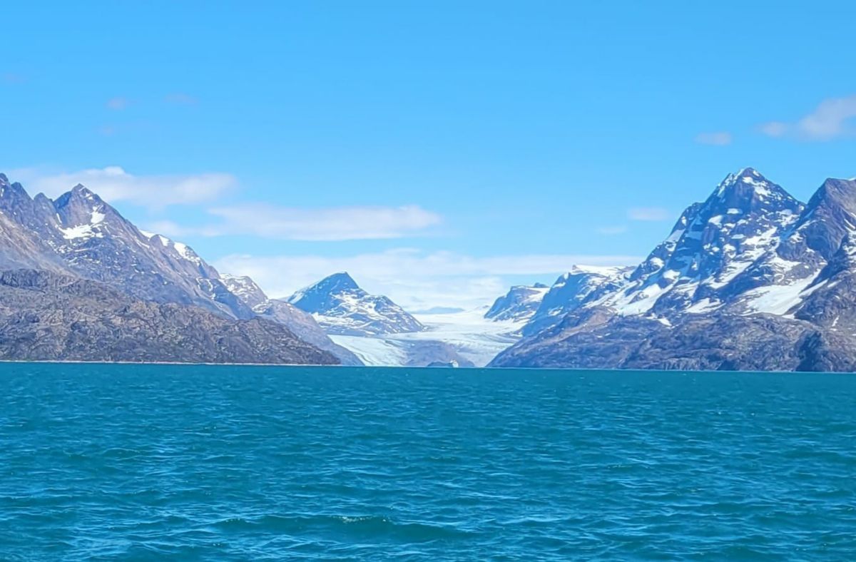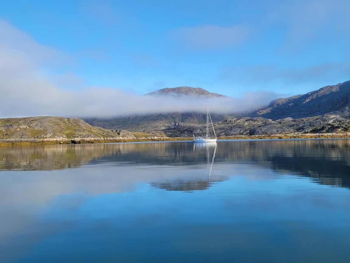 Wir fahren weiter auf der inneren Route, diesmal mit Sicht. Super Wetter. Die wilde Küstenlinie Grönlands zeigt sich von ihrer schönsten Seite. 🙂 Heute sehen wir zum ersten Mal weiße Flecken auf unserer elektronischen Seekarte. Unvermessen, nicht kartographiert …. Besondere Vorsicht ist geboten, konzentriert Ausschau halten und gesunden Menschenverstand walten lassen. Sollte kein Problem sein, da wir nur langsam unterwegs sind. Inzwischen ist der Wind weg, spiegelglatte See um uns herum.