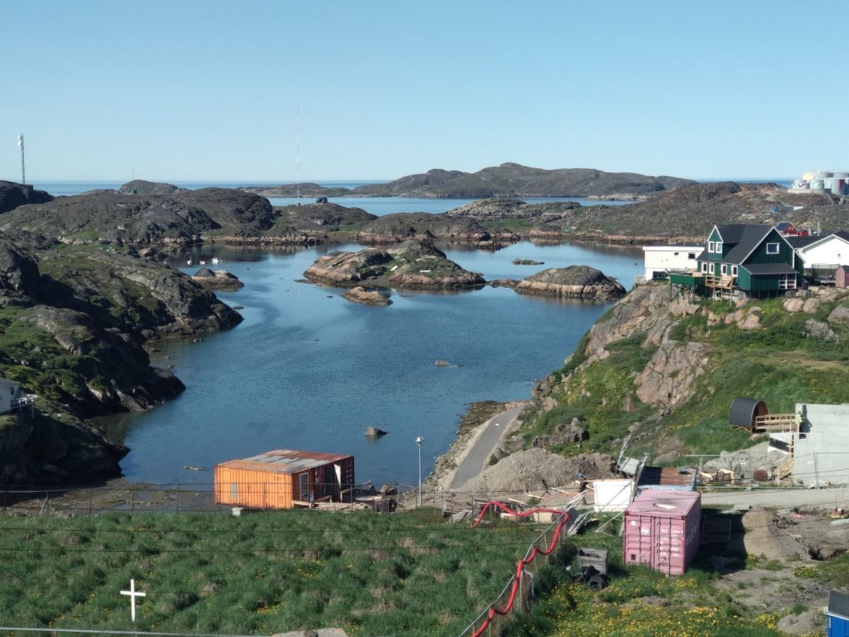 Die Einkaufsliste ist abgearbeitet. Duschen können wir im Seemanns-Heim. Es ist genauso teuer wie in Nuuk, aber dafür gibt es Handtücher, Shampoo und Duschzeug. Ein wunderschönes Badezimmer mit extra Toilette und Ankleideraum wartet hier auf uns. Theoretisch könnten wir sogar die Leih-Bademäntel und Pantoffeln benutzen, die für Gäste zur Verfügung stehen. Da wird das Duschen zum Fest. Am letzten Tag schaue ich mir noch ein bisschen das Städtchen an und bestaune das Außengelände vom Museum.