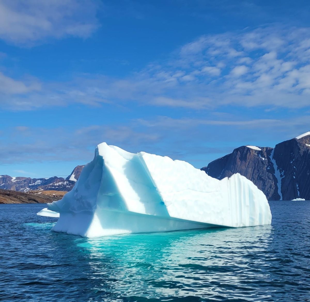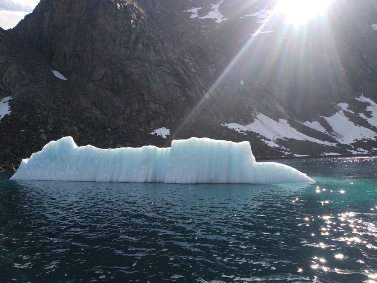 Nachts um 1.30 Uhr gibt es ganz großes Kino. Die Ugly Betty bekommt Stress mit einem Eisberg, welcher sich in unseren Fjord verirrt hat. Der hat angeklopft und liegt jetzt direkt vor ihrem Bug. Zwei unerschrockene und dick eingepackte Männer steigen ins Beiboot. Stark motorisiert, mit ihren vielen Pferdestärken und Eis-Poles schaffen sie es, den Eisklotz an die Seite zu schieben. Das ist natürlich keine Garantie für eine ruhige Nacht, denn er könnte genauso mit der Strömung wieder zurück driften, wenn die Tide kentert. Anschließend kommt das Dingi zu uns, die Männer fragen, wie viel Wassertiefe das Echolot anzeigt. Wir liegen zwar in der Gefahrenzone, aber der Eisberg wird wahrscheinlich nicht bis zur Walkabout treiben, sondern vorher auf Grund festsitzen. Sehr beruhigend. Die Ugly Betty ankert tiefer, die bleiben in Alarm-Bereitschaft. Auch die Crew von der Thindra macht noch unangenehme Bekanntschaft mit diesem Eisklotz. Sie haben etwa 12-15 Meter Wassertiefe unter dem Kiel. Das Eis kommt ihrem Boot gefährlich näher, und dann setzt sich der Koloss über deren Ankerkette. Aufmerksam Wache gemacht, gut reagiert. Durch geschicktes Manövrieren haben sie den größten Schaden abgewendet. Es hätte leicht das Ankergeschirr kosten können.