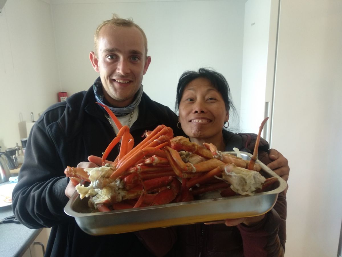 Upernavik soll unsere letzte Station in Grönland sein. Diese Insel aus Granit-Gestein liegt nördlich des 72. Breitengrades und ist der Startpunkt für die Nordwest-Passage. Eine gute Adresse für Dusche, Waschmaschine und Trockner finden wir in Gina’s Gästehaus. Sie ist eine Philippinin, die bereits seit 28 Jahren in Grönland lebt. Eine quirlige Frau voller Energie, gleichermaßen fleißig und redselig. Natürlich ist sie auch Geschäftsfrau, wir zahlen den stolzen Preis von 200,- Dänischen Kronen für ihren Service. Wert ist es das auf jeden Fall, wir sind froh darüber. Wahrscheinlich ist es die letzte Gelegenheit für eine Komplett-Reinigung für längere Zeit. Es gibt gute Unterhaltung, Kaffee und Königskrabben ( zum Frühstück 😉 ) gratis dazu.