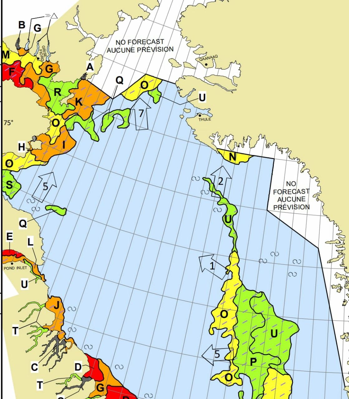 Und auf einmal sind sie wieder da ! Auf Höhe von Kap Cranstown treiben Eisberge zu allen Seiten um uns herum. Zumindest zeigt das der Bildschirm vom Radar an. Man sieht draußen gar nichts. Slalom-Fahren im Nebel. Wir befinden uns jetzt in der Baffin Bay, wo es noch breite Gürtel von Packeis gibt. Der Weg nach Westen ist in großen Bereichen blockiert, da gibt es kein Durchkommen für unsere kleine Walkabout. Also warten wir weiter und üben uns in Geduld. Mittags fahren wir knapp an einem rot eingekreisten Flecken vorbei. „Explosiv“ steht in der Seekarte, keine näheren Erläuterungen. Wir fragen uns, was das wohl sein könnte.