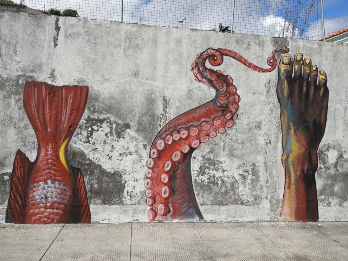 Danach sind wir frei, die gelbe Quarantäne-Flagge kann abgenommen werden und wir dürfen uns im Ort frei bewegen. Einkauf im Supermarkt ist toll, nach 2 Wochen auf dem Wasser beinahe paradiesische Zustände. Das Preis-Niveau ist allerdings nicht so, wie wir es von den Kanaren gewöhnt sind. Alles erscheint uns relativ teuer. So ganz angekommen sind wir noch nicht in Horta. In der Stadt habe ich ständig Angst, dass ich hier unter’s Auto komme. Viel Verkehr. Mittagessen im Peter Café Sport, das ist DIE In-Kneipe schlechthin, ein Treffpunkt der internationalen Segler-Szene. Endlich gibt es mal wieder richtiges Essen. Aber das war’s dann auch. Zu voll, zu laut, zu geschäftig. Nichts für uns, da suchen wir uns lieber eine von Einheimischen besuchte Bar etwas abseits der Promenade. Kulturschock sozusagen nach unserer langen Zeit auf El Hierro.