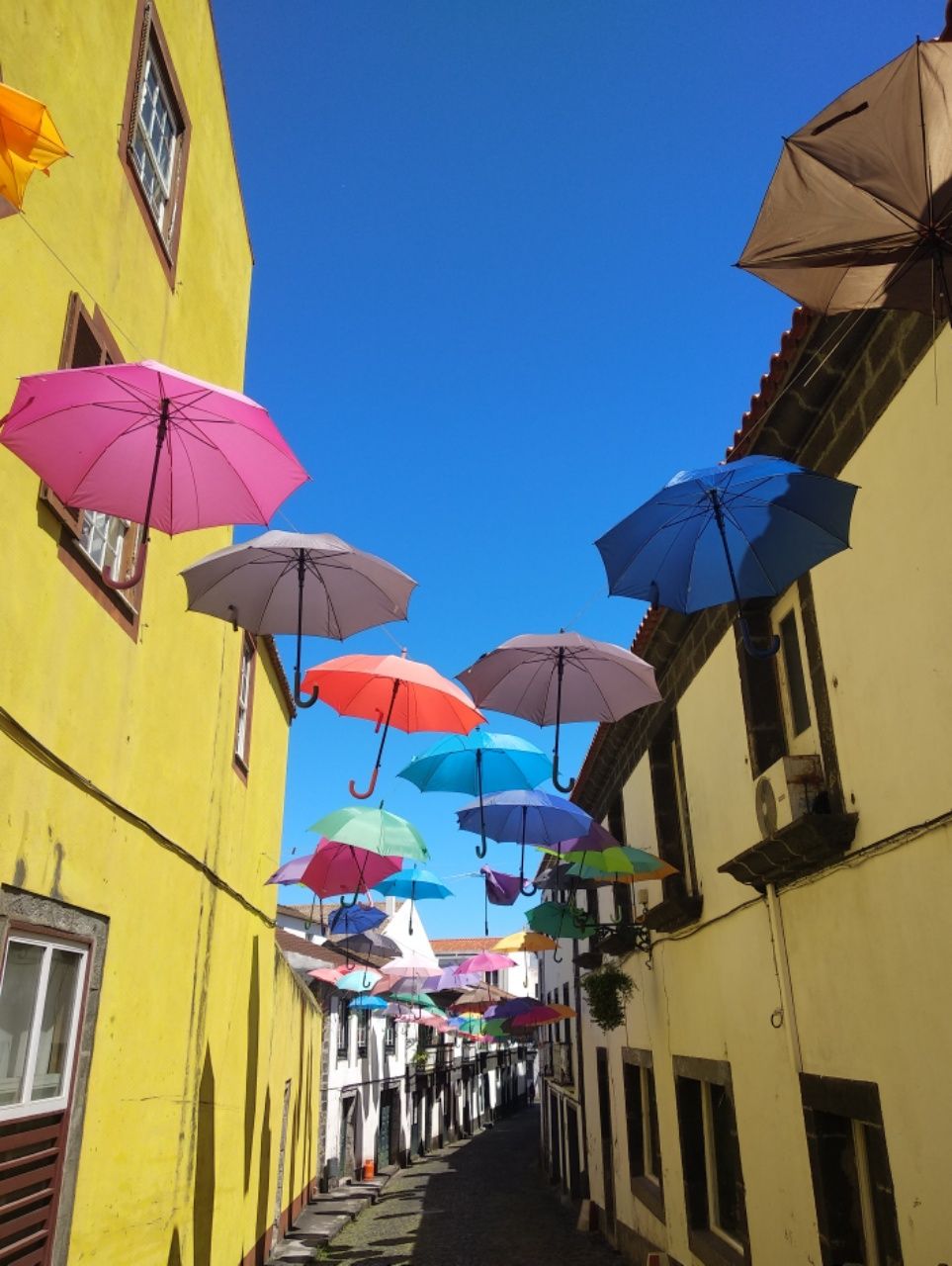 Trocken geblieben während der Nacht. Geweckt werden wir vom lauten Vogelkonzert. Es ist neblig, aber warm. Weiter geht es auf dem „Weg der 10 Vulkane“ von der Caldeira hinunter in Richtung Osten. Rechts von uns liegt das Feuchtgebiet „Charcos de Pedro Miguel“. Dort steht eine Holzhütte zur Vogel-Beobachtung. Wir sehen nicht viel, denn dichte Nebelschwaden wabern um uns herum. Felder, Weiden, Milch-Wirtschaft, der Weg ist nicht besonders spektakulär. Der Nebel löst sich gegen Mittag auf, wir können einen kurzen Blick auf die Nachbarinseln Graciosa, São Jorge und Pico erhaschen. Vom Caldeira-Rand aus folgen wir dem PR07 Caminhos Velhos über eine Distanz von etwa 20 Kilometern. Der längste Teil des Weges verläuft über wenig befahrene Straßen oder Schotterpisten. Eine kurze Strecke taucht ein schmaler Pfad steil hinab in eine dicht bewachsene Schlucht. Hier schneiden gerade zwei Männer den Weg für uns frei. Nach einer halben Stunde ist die Wildnis leider schon wieder vorbei, wir müssen erneut einer asphaltierten Straße folgen. Erst am Nachmittag wird der Himmel so klar, so dass wir die benachbarten Inseln wunderbar klar sehen können. Wilder Ingwer und Fenchel stehen am Wegesrand, die gelben Blüten leuchten um die Wette.