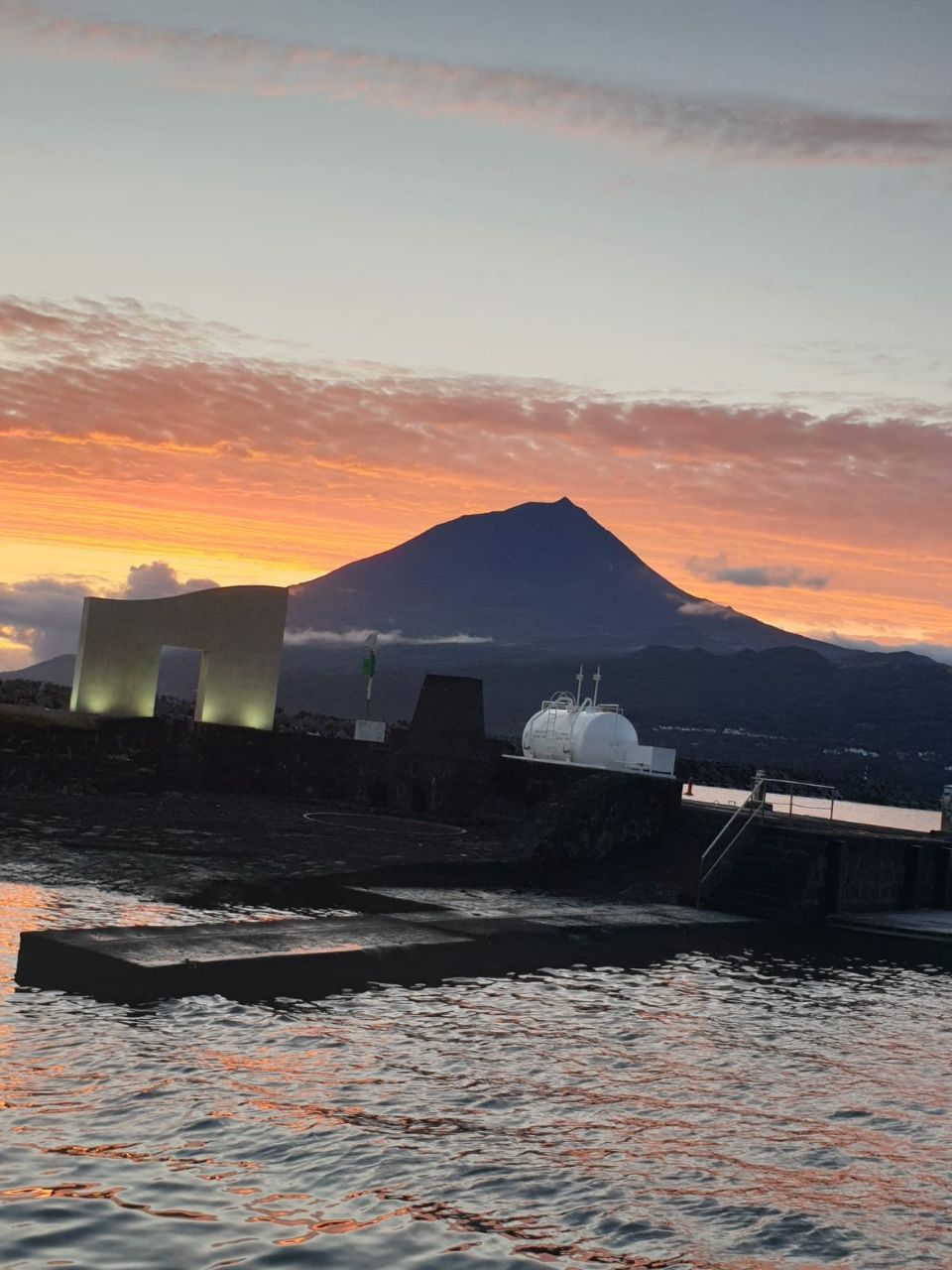 Nach 5 Stunden laufen wir auf den Ansteuerungspunkt der Marina Lajes do Pico zu. Ein winzig kleiner Hafen mit nur 3 Liegeplätzen für fremde Segler. Unsere elektronische Seekarte ist schon einen Tag älter und stimmt nicht mehr. Ausguck ist gefragt, damit man die Felsen unter Wasser rechtzeitig erkennt. Im Oktober 2019 hat der Hurricane Lorenzo große Schäden auf den Azoreninseln angerichtet, besonders in den Häfen der Inseln Pico und Flores. Die Mauer, die als Wellenbrecher diente, wurde an anderer Stelle neu aufgebaut. Eine Strandbar, die uns wärmstens empfohlen wurde, ist anscheinend auch dem Hurricane zum Opfer gefallen. Die Einfahrt soll tricky sein, es gibt nur eine sehr schmale Passage. Unter Wasser liegende Steinblöcke und Felsen auf der linken Seite, eine Mauer aus Betonklötzen auf der rechten, so fummeln wir uns langsam in den Schutz des Wellenbrechers. Die Bedingungen sind gut, Hochwasser, klare Sicht, kaum Wind. Wir suchen und finden unseren Weg zwischen Riff und Hafenmauer. Supernetter Empfang durch Hafenmeister José, den wir eine halbe Stunde vor Ankunft telefonisch kontaktiert haben. Er fragt nach der Breite unseres Bootes und weist uns dann einen Platz zwischen zwei Booten zu, die offensichtlich nicht bewegt werden. Also drei Boote in einer Box, wir passen gerade so dazwischen. Müssen nur über eines davon steigen und springen dann direkt auf den Steg. Top ! 🙂