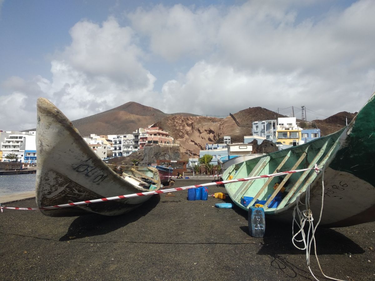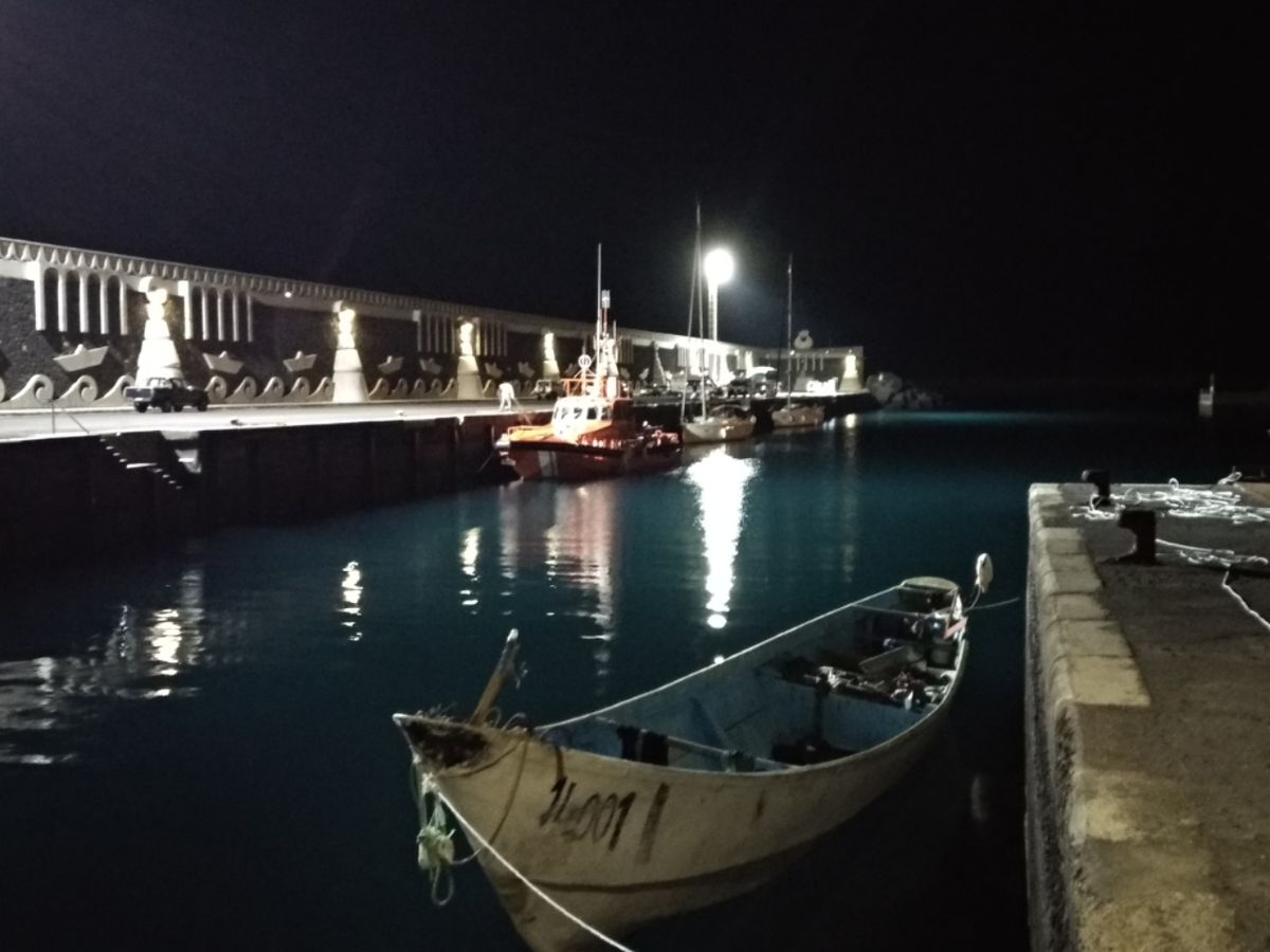In der Nacht von Heiligabend zum 1. Weihnachtstag erreicht eine Patera mit Flüchtlingen den Hafen. Also quasi, während wir unseren Weihnachtsbraten genießen, herrscht draußen an der Kaimauer helle Aufregung. Den Tag davor gab es in den Nachrichten eine Sturmwarnung auf den Kanaren. Das Meer war aufgepeitscht von hohen Wellen, über dem gesamten Küstenstreifen flog die Gischt bis weit ins Landesinnere. Niemand hat die Ankömmlinge bei diesem Unwetter erwartet. Für uns ist es wirklich ein Rätsel, wie sie bei Nacht und derart hohem Seegang unseren kleinen Hafen gefunden haben. Über 40 Menschen auf engstem Raum, die gerade froh sind, dass sie mit dem nackten Leben davongekommen sind. Unfassbar, was diese armen Leute in ihren wenig seetüchtigen Nuss-Schalen mitgemacht haben. 🙁 Es ist inzwischen schon die fünfte Patera, welche wir seit Anfang November in La Restinga ankommen sehen. In der aktuellen Presse lesen wir, dass alleine am 2. Weihnachtstag mehr als 400 Personen auf den größeren Kanarischen Inseln angelandet sind. Am Morgen des 29. Dezember kommt schon wieder ein Flüchtlingsboot in La Restinga an. Nun liegen hier bereits zwei Holzkähne, die mit dem Kran an Land gehoben, entrümpelt und verschrottet werden müssen. Ein Riesenproblem für die Kanarischen Inseln, deren Wirtschaft sowieso wegen Covid-19 und fehlender Touristen total kaputt ist. 🙁