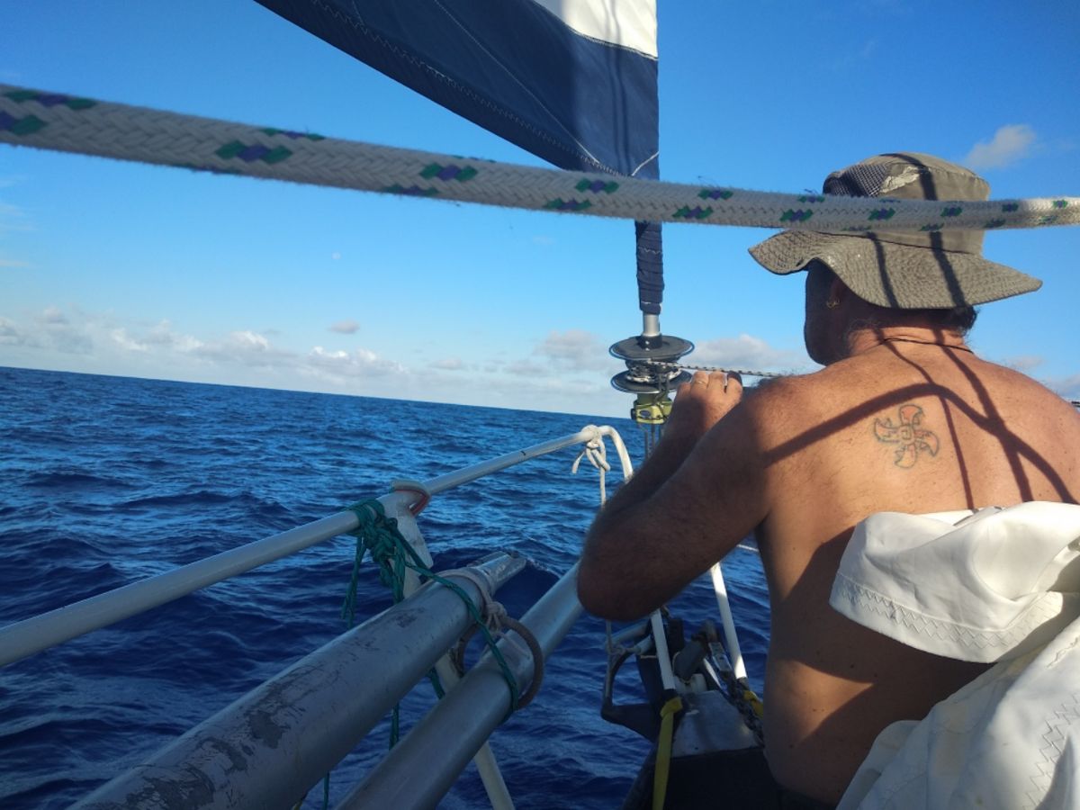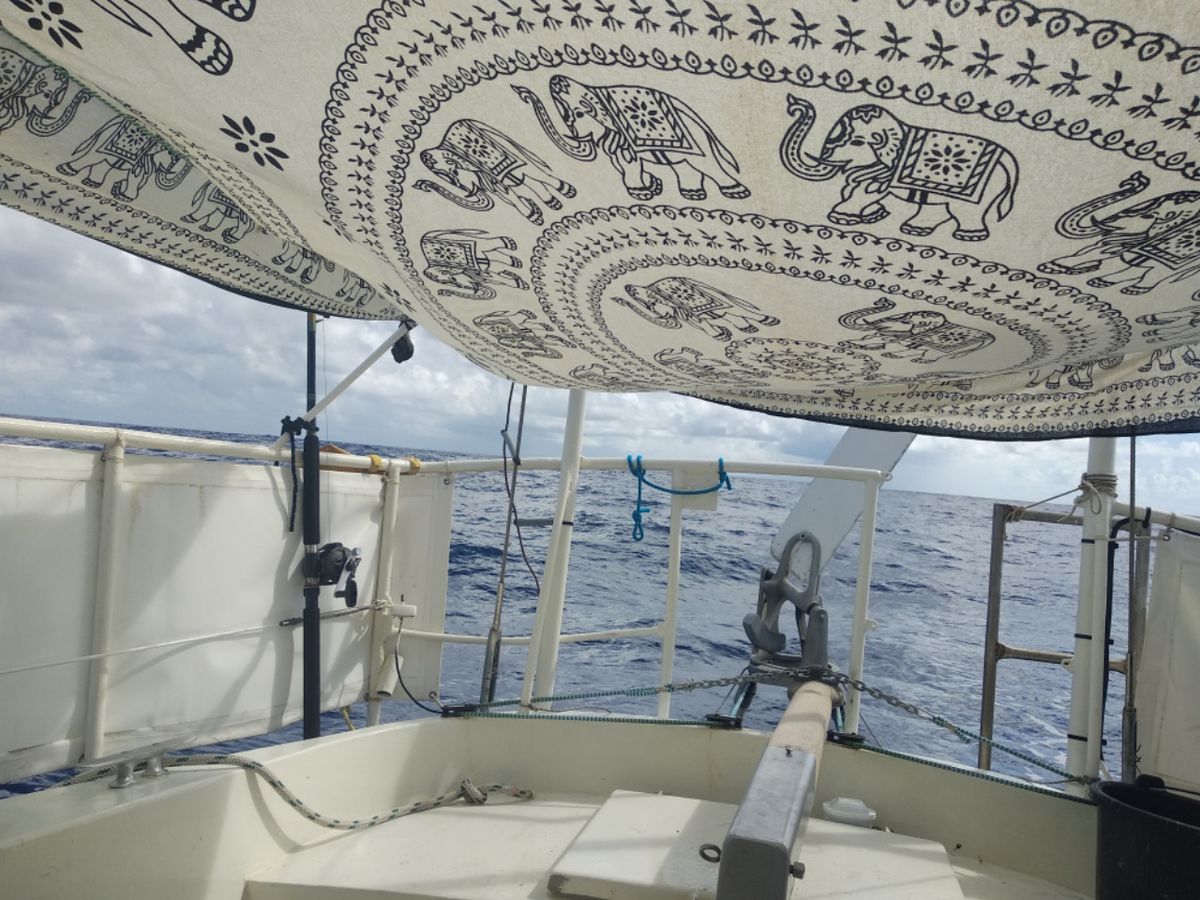 Walkabout läuft wie auf Schienen. Kein Geschwindigkeitsrekord, aber schön geschmeidig und ohne unser Zutun. Die Segel stehen unverändert seit dem zweiten Tag, die Aries hält den Kurs, die Schiffs-Bewegungen sind gleichmäßig. Könnte gar nicht besser sein. So kann es die nächsten 5-6 Wochen gerne bleiben. Die ersten 500 Seemeilen liegen hinter uns. Haben seit drei Tagen kein Schiff mehr gesehen, auch die AIS-Warnliste zeigt im Umkreis von 50 Seemeilen nichts an. Selten so eine ruhige Zeit auf dem Boot gehabt, einfach nur entspanntes Segeln, Sonne und blaues Meer. Wir lieben lange Passagen, je weiter, umso besser. Küstensegeln ist gar nichts für uns, kurze Strecken und Hafen-Hopping empfinden wir als Stress.