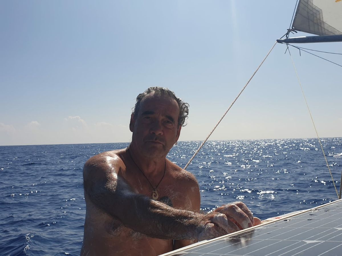 Der Wind schläft ein, es fängt an zu regnen. Ungewohnt, denn wir haben seit Wochen keinen Regen mehr gehabt. Das ist eine gute Gelegenheit zum Duschen im Cockpit. Nach etwa einer Stunde ist der Schauer vorbei, der Wind stellt sich wieder ein, allerdings vorübergehend mit leichtem Süd-Anteil. Kurze Störung im System, bald darauf geht es weiter mit rauschender Fahrt auf Kurs 270°. Abends beobachten wir Wetterleuchten an steuerbord voraus, also im Westen. Blitze zucken, und der Horizont wird kurzzeitig erleuchtet. Im Pazifik bedeutet das : Schlechtes Wetter im Anmarsch, allerdings immer mit einem Tag Verzögerung. Man kann es sich kaum vorstellen, denn hier sieht alles friedlich aus. Die Wetterkarten und Kompetenzzentrum Hamburg sagen dasselbe. Alles gut, weiter so. Henning kann zu Hause auf seiner Wetterstation die Gruppe von Segelbooten auf den Kapverden erkennen. Er nennt sie „den Mückenschwarm“. Wir sind offensichtlich alleine in dieser Wasser-Wüste. Seit einer Woche haben wir kein Schiff mehr gesehen, kein Licht, kein AIS-Signal. Nichts. Die Tage ähneln sich, ganz normale Bord-Routine Wir haben diesmal schnell unseren Rhythmus gefunden. Nur das Logbuch zeigt uns, welcher Tag ist und wie lange wir schon unterwegs sind. Gegen Mitternacht geht der Zirkus los. Der Wind legt beständig zu, weswegen wir bei Wachwechsel die Segelfläche verkleinern wollen. Wir haben zwei Segel in der Nut der Rollreff-Anlage eingefädelt und stellen jetzt fest, dass die sich nicht so einfach zusammen einrollen lassen. Blöd, denn inzwischen bläst es heftig. Walkabout rennt immer schneller, und wer weiß, wie sich das weiter entwickelt. Thomas geht nach vorne und zieht ein Segel ganz herunter. Es steht nur noch die Genua auf steuerbord, nachdem er das schlagende Tuch an backbord gebändigt hat. Diese wird um die Hälfte eingerefft, mit der verkleinerten Segelfläche ist die Geschwindigkeit um 2 Knoten reduziert. Allerdings läuft das Boot jetzt unruhiger, und der Kurs liegt nicht mehr so gut an. Egal, morgen bei Tageslicht werden wir eine bessere Lösung finden. Es geht die ganze Nacht weiter mit Wetterleuchten in Minuten-Abständen, jetzt nicht mehr nur westlich, sondern es blitzt überall um uns herum. Das Gewitter scheint immer näher zu kommen, bzw. wir fahren direkt darauf zu. Unheimlich.