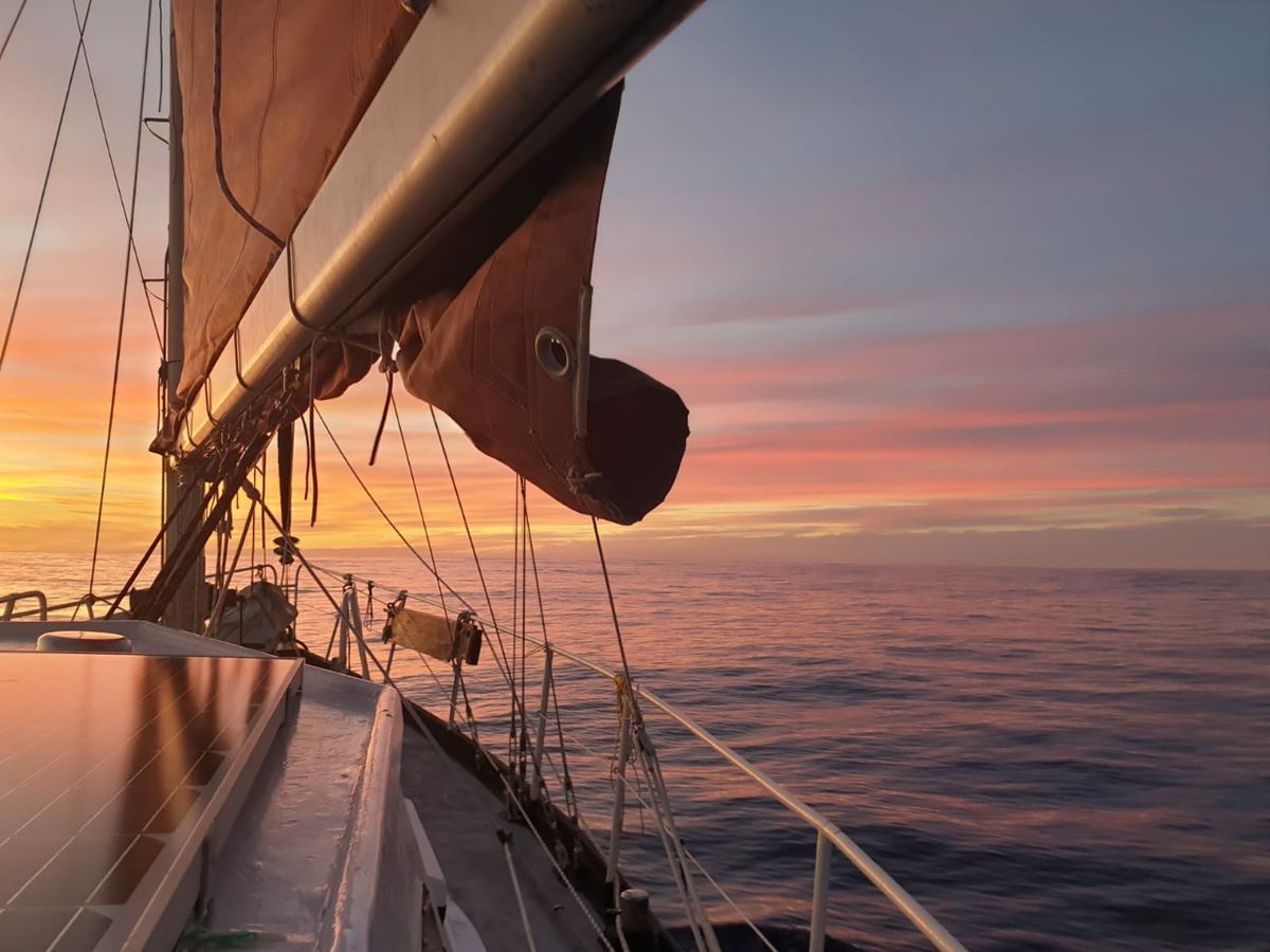 Es ist noch ein bisschen unwirklich, aber wir sind ganz entspannt durch die Nacht gesegelt. Ich hatte keine besonders guten Gefühle nach dem RambaZamba der vergangenen Tage. Froh und erleichtert, wenn meine beiden Dunkel-Wachen um waren und ich die Verantwortung abgeben konnte. Kam mir schon fast ein bisschen paranoid vor, um nicht zu sagen „ängstlich“. Hoffentlich frischt der Wind nicht auf ! Kommt da vielleicht eine dunkle Wolke ? Wollen wir nicht doch vorsorglich reffen ? Umso besser, dass meine Befürchtungen unbegründet waren und einfach nichts passiert ist. Sternenklare Nacht, ruhige See, gleichmäßige Fahrt genau auf Kurs. Keine störenden Geräusche vom Motor, kein Diesel-Geruch. Es hört sich richtig beruhigend an, wenn das Wasser so schön gleichmäßig an der Bordwand plätschert.