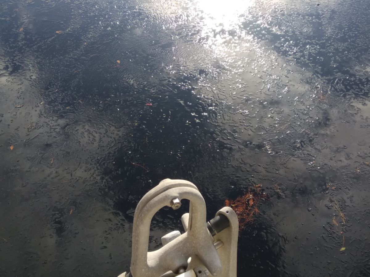 Sonntag, Vierter Advent, Regentag. Es wird überhaupt nicht hell, alles ist grau und kalt. Es regnet ohne Unterbrechung vom Aufstehen bis zum Schlafengehen. Das ist eine günstige Gelegenheit, um alle unsere Segel zu waschen, die ja unterwegs reichlich mit Salzwasser kontaminiert wurden. Der nächste Morgen sieht vielversprechend aus, zaghafte Sonne am Himmel, kein Wind. Wir müssen die Segel hochziehen und alles wieder trocknen, bevor wir es verstauen können. Die Segel und Leinen sind gefroren, das Deck ist vereist. In der Ecke, wo wir liegen, hat sich eine dünne Eisschicht auf dem Wasser gebildet. Die Walkabout ist ein „Keller-Schiff“, der Salon befindet sich zum Teil unter der Wasserlinie. Da ist es wohl kein Wunder, wenn es im Inneren eiskalt ist. Wir gehen mit langem Shirt und zwei Paar Socken ins Bett.