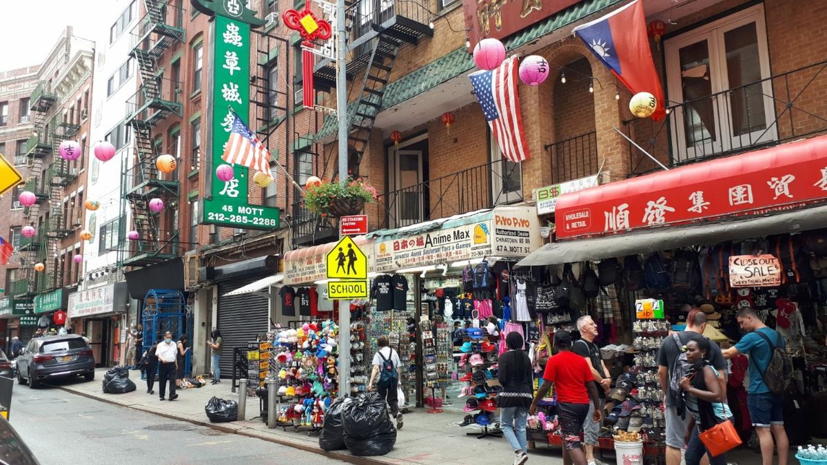 Das nächste Ziel ist China Town, ein dicht besiedeltes, sehr lebhaftes Viertel in Manhattan. Dort kommt man schnell auf andere Gedanken, das Leben ist bunt und quirlig. Die Einheimischen treffen sich zum Schach- und Mah-Jongg-Spielen und zum Tai-Chi im Columbus Park. Faszinierend. Natürlich geht man in China-Town zum Mittagessen in ein Chinesisches Restaurant – dort ist das Essen gut und günstig. Daran angrenzend gibt es ein italienisches Stadtviertel, deutlich ruhiger und gepflegter. Little Italy gefällt uns sehr gut. Viel Blumenschmuck und mediterranes Flair in den Farben Italiens. Jedes zweite Restaurant wirkt einladend, aber wir haben ja gerade erst gegessen. Danach geht es über den Broadway bis zum Times Square. Es wird schon langsam dunkel, die Leuchtreklamen und das Leben auf der Straße werden immer verrückter. Wir setzen uns auf auf die roten Treppen, beobachten und staunen.