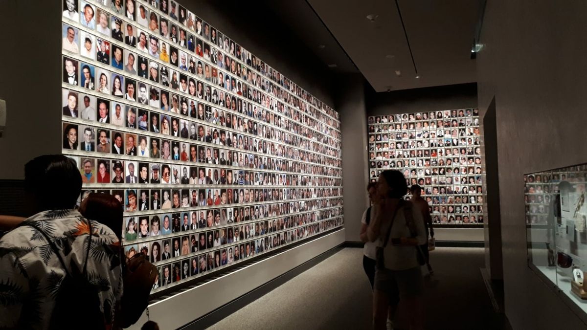 Sind schon wieder zeitig auf den Beinen. Wir haben uns das 9/11 Memorial Museum vorgenommen, die bedeutendste Gedenkstätte des Landes. Bereits vor der Öffnungszeit stehen wir diszipliniert in einer langen Schlange an. Um kurz vor 10.00 Uhr am Morgen sind wir drin, zusammen mit einigen Hundert anderer Touristen. Unsere Taschen werden durchleuchtet, wir durchlaufen einen Körper-Scan. Alles wird für die Sicherheit getan. Kein Wunder, dass die USA nach den tragischen Ereignissen von 9/11 so strenge Maßnahmen ergriffen haben. 10000 Quadratmeter Ausstellungsfläche in verschiedenen Hallen, viel größer als erwartet. 23 Meter unter der Oberfläche gelangt man zum „Bedrock“, dem Urgestein, wo einst das Fundament der Zwillingstürme lag. Dieses Museum ist ein wichtiges Stück Zeit-Geschichte. Das muss man gesehen und gefühlt haben. Die ganze Ausstellung ist sehr bewegend. Taschentücher im Spender stehen bereit. 🙁