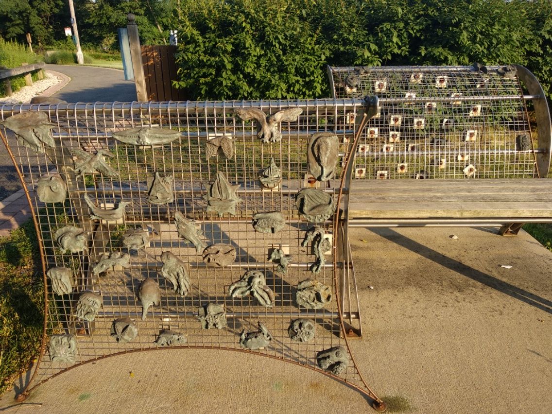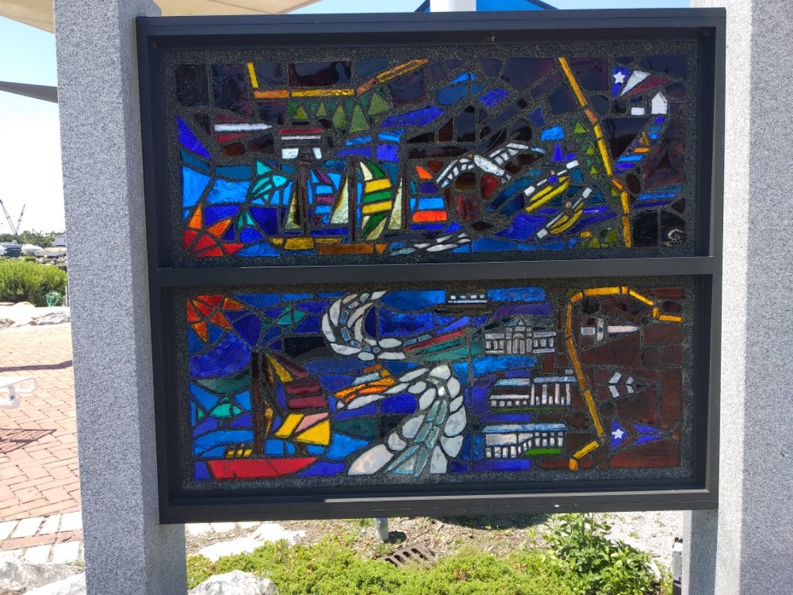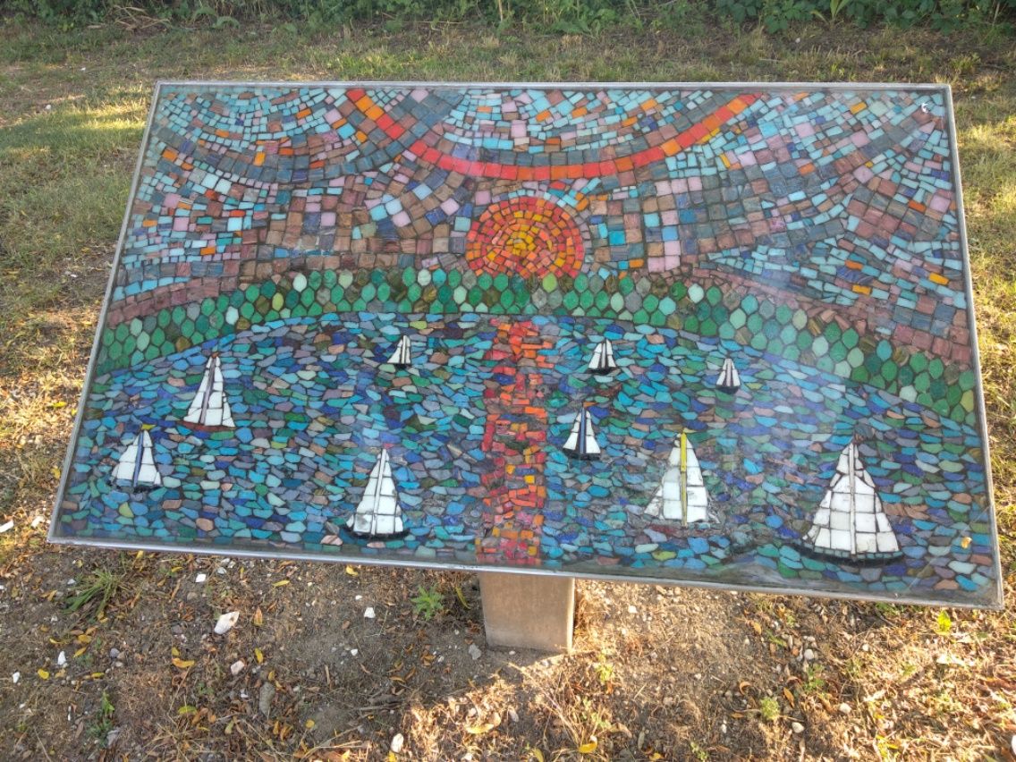 Auf dem Grünstreifen zwischen Ufer und Straßenrand ist eine Familie von Kanadagänsen auf Nahrungssuche. Ein Elternpaar, vier Jungvögel sind dabei, überhaupt nicht scheu. Wir laufen durch den „Baywalk Park“. Skulpturen, Mosaike, Bilder, etliche Schilder mit Erklärungen. Unzählige Bänke laden zum Verweilen ein. Das Ganze nennt sich „Nautical Art Museum“. Nett gemacht, ein hübscher Ort mit einer etwas langsameren Gangart. Bestimmt eine gute Wohngegend, wenn man in der Nähe von New York City leben möchte, aber ohne die Hektik und den Lärm der Großstadt. Ein kleiner Strandabschnitt wird bei Niedrigwasser von Kormoranen, Enten und Schwänen bevölkert. Alle Gebäude im Ort sind flach gebaut, kein einziger Wolkenkratzer zu sehen. Junge Kaninchen hoppeln über den Weg. Es ist richtig idyllisch hier. Kein Lärm, viel weniger Menschen und Autos, kein Stress. In der Nähe finden wir einen großen Supermarkt, nicht ganz billig, aber durchaus gut für den täglichen Einkauf.