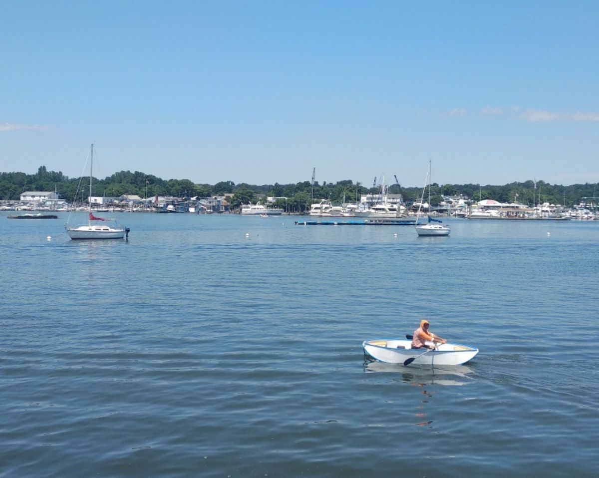 In der Manhassat Bay gibt es ein riesiges Mooringfeld, wir angeln uns die gelbe Mooring Nr. 20. Port Washington ist keine richtige Marina, nicht ganz das, was wir erwartet haben. Es gibt kein Büro zum Anmelden, keine Duschen, keine Waschmaschine, kein freies WLAN auf dem Boot. Schade, ich hatte mich schon auf ein wenig Luxus gefreut. 😉 Strom haben wir mehr als genug, wir brauchen keinen Land-Anschluss. Wo wir Diesel und Wasser tanken können, das müssen wir noch herausfinden. Dafür ist unser Platz hier erschwinglich, kostet nur 35,- Dollar pro Tag. Im Preis mit drin ist das Wasser-Taxi, was die Sache recht attraktiv macht, wenn man weit draußen liegt. Ein Anruf oder über Funk auf Kanal 9, dann wird man abgeholt. Gefällt mir gut nach dem komplizierten Zeug beim Liberty State Park. 🙂