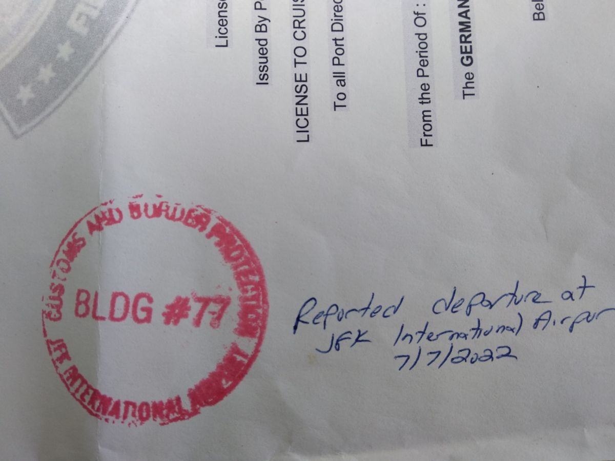 4. Juli ist DER Nationalfeiertag in den Vereinigten Staaten von Amerika. Am Unabhängigkeitstag (Independence Day) finden patriotische Paraden, Feuerwerke und Konzerte statt. Eigentlich wollten wir schon weg sein, nun sind wir mittendrin, aber zum Glück nicht mehr in New York City. Abends sitzen wir in der Plicht und schauen uns das Spektakel am Himmel an. Raketenzauber zu allen Seiten, wohin man blickt. Ein toller Anblick, aber wie bei jedem Feuerwerk denken wir daran, was für eine irrsinnige Verschwendung von Geld da stattfindet. „Brot statt Böller !“ Das Boot ist blitzsauber, Wäsche wohlriechend, Bett und Seekoje sind frisch bezogen. Was sonst noch ? Kakerlaken-Kontrolle. Noch einmal werden die Bodenbretter in der Pantry angehoben. Keine Krabbelviecher. Alles trocken. Die Not-Reparatur des Seeventils hat gehalten. Sehr beruhigend. 🙂 Wir müssen noch auf ein Paket warten. Außerdem haben wir uns für Donnerstag das Ausklarieren bei der CBP ( United States Customs and Border Protection ) vorgenommen. Die nächstgelegene Stelle befindet sich am Flughafen von New York City. Wir haben eigentlich überhaupt keine Lust, uns diesen Stress anzutun. Die Fahrt mit öffentlichen Verkehrsmitteln ist umständlich und wird Nerven kosten …. Aber das muss sein, wir wollen uns ordnungsgemäß abmelden und die „Cruising License“ der Walkabout abgeben. Gültig wäre das Zertifikat bis zum 09.12.2022, mein US-Visum ebenfalls, während Thomas sich bereits in der Verlängerungs-Phase befindet. Wir möchten beim Ablegen keine Unstimmigkeiten hinterlassen und Niemanden verärgern, denn wir hoffen auf ein neues 10-Jahres-Visum Anfang November in Berlin.