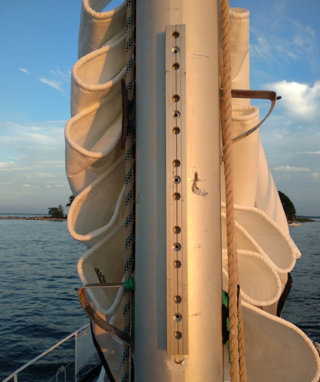 Kein Wind. Die Tide passt nicht. Wir haben Gegenströmung. Macht irgendwie gar keinen Sinn, dagegen zu motoren. Nach 3,5 Stunden fällt unser Anker vor Great Captains Island. Eine private Insel, an Land gehen dürfen wir nicht, wollen wir aber auch gar nicht. Haben nach 7 Monaten erst einmal genug von den USA : Da war der Florida-Trail, die Lamb’s Marina, AT Virginia, 480 Seemeilen auf dem ICW, weitere 200 Seemeilen Chesapeake und Delaware Bay, Annapolis, New York, Port Washington. Keine Lust mehr auf weitere Orte. Wir werkeln ein bisschen auf dem Boot herum. Um 20.30 Uhr ist die Operation beendet, die Schiene sitzt bombenfest am Mast.:)