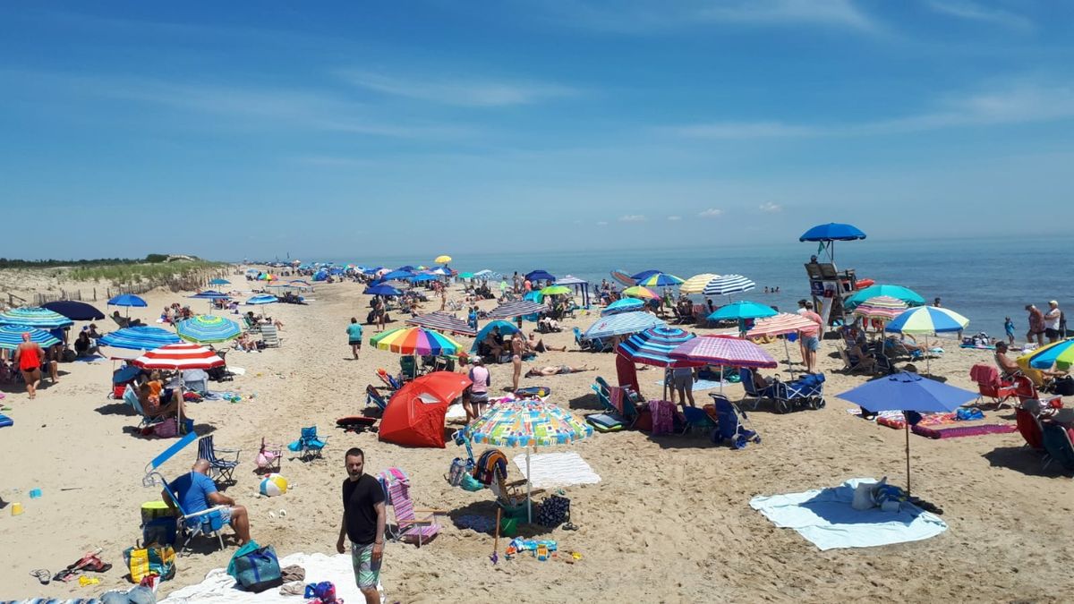 Wir laufen lange im weißen Sand und baden die Füße im Atlantik. Freuen uns über Dutzende von kleinen Vögeln, die an der Wasserkante trippeln und an Norderney erinnern. Strandläufer. 🙂 Plötzlich stehen wir vor einem Zaun. Vogelschutzgebiet – hier geht es nicht weiter, der Leuchtturm bleibt unerreichbar. Ein Weg quert zur anderen Seite, wo die Atlantik-Wellen an den Strand donnern. Man glaubt es kaum, aber dieser Abschnitt ist für Autos zugänglich, was auch reichlich genutzt wird. Die Amis fahren tatsächlich mit ihren Monster-Trucks bis an den Strand, bauen daneben ihre Zelte und Angelausrüstung auf. Verrücktes Volk. 😉 Im Anschluss folgt eine Meile mit bewachtem Badestrand. Autos und Hunde sind verboten, Alkohol und Rauchen auch. Bunte Strandzelte prägen das Bild. Die Menschen liegen dicht an dicht auf Handtüchern oder mitgebrachten Liegestühlen, Musik ertönt aus diversen Radios. Nicht weit außerhalb des bewachten Badefeldes zieht eine Gruppe von Delfinen gemächlich ihre Kreise. Ich komme mir vor wie an der CopaCabana in Rio de Janeiro.