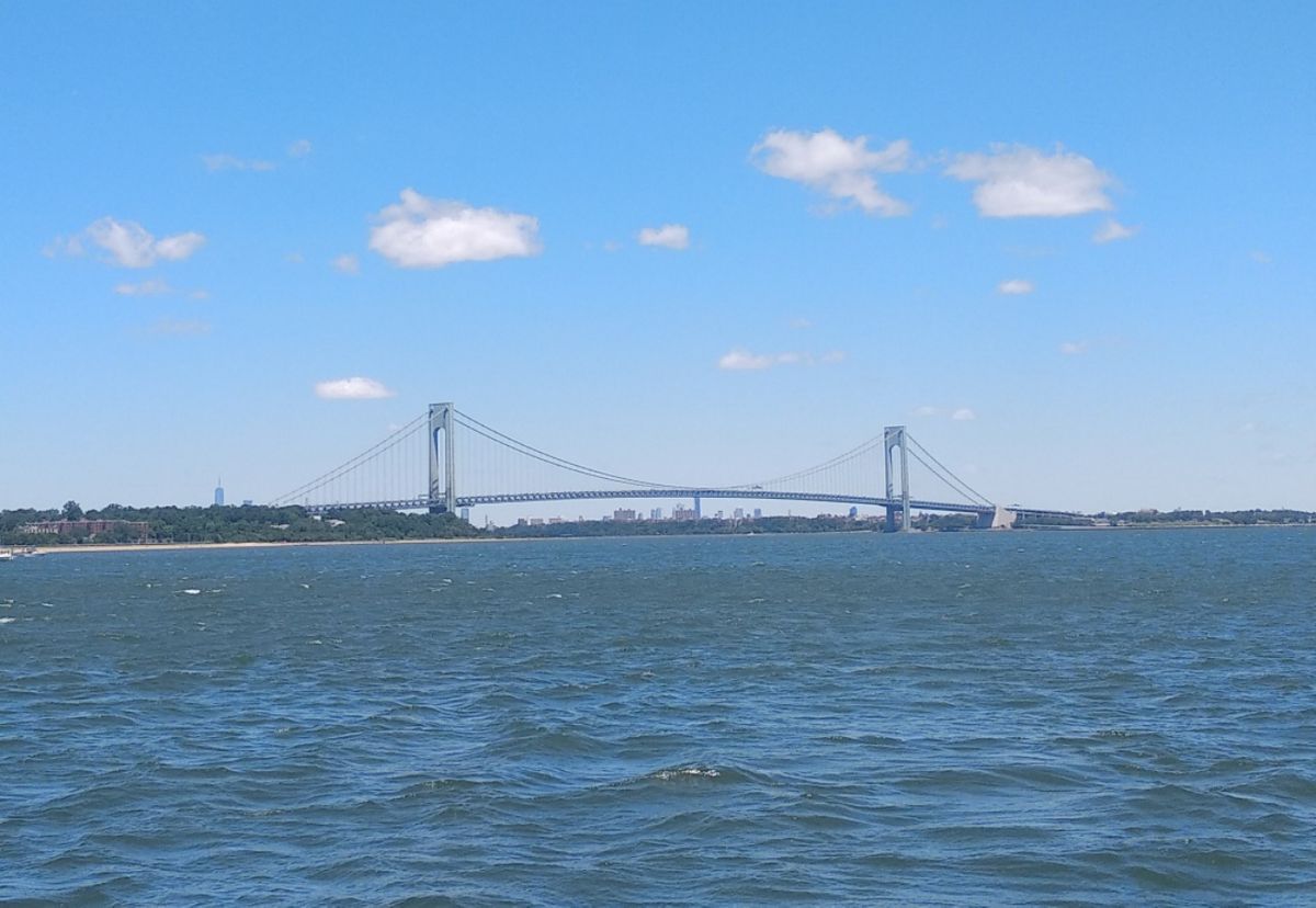 Am nächsten Morgen haben wir eine kleine Chance, den Standort zu wechseln. Der Wind hat auf 6 Bft. abgenommen und soll erst mittags wieder stärker werden. Die Tide passt, Strömung kommt nicht von vorne, sondern von der Seite. Wir suchen und finden einen Platz in 10 Seemeilen Entfernung, der zu allen Seiten geschützter aussieht. Irgendwo hält ein Anker nicht, wir hören über Funk den Hilferuf an die Coast Guard mit. Aufbruch um 10.00 Uhr. Der Motor tuckert unauffällig, das Kühlwasser läuft. Unser Anker ist kaum einzuholen. Der hat bei diesen schweren Bedingungen super gehalten. Walkabout hat sich nicht vom Fleck bewegt. 🙂 Heraufholen von 50 Meter Kette mit Muskelkraft ist anstrengender Frühsport für Thomas. Bis auf den Wind ist das Wetter herrlich. „PAN PAN“ der Küstenwache : Mann über Bord. Zum Glück folgt kurz darauf die Entwarnung, dass die Person gerettet wurde. Drei Stunden brauchen wir für die Durchquerung der Lower Bay. Um 13.00 Uhr fällt unser Anker genau bei Hochwasser zwischen Midland Beach auf Staten Island und Hoffman Island. Gerade in diesem Moment frischt der Wind kräftig auf. Erneut bekommen wir einen Funkspruch mit. „Vessel under Stress“. Herrje – was ist hier bloß los ? Gute Entscheidung, den Platz zu wechseln. Es ist zwar nicht ruhig, aber schon viel angenehmer. Landgang gibt es nicht, obwohl ein schöner Sandstrand vor unserer Nase liegt. Dafür sind die Bedingungen zu rau. Etwa 10 Liter Dreckwasser haben sich in der Bilge gesammelt, die müssen abgepumpt werden. Danach putzt Thomas den Motorraum schön sauber, und die Original-Schraube der Kühlwasser-Pumpe findet sich am Grund wieder. „Haus verliert nichts“ …. würde meine Oma jetzt sagen. Boot auch nicht. 😉 Getriebe-Öl wird nachgefüllt, die Stopfbuchse gefettet und angezogen. Dann ist alles wieder schick. Planung für die nächsten Tage steht an. Wir lesen uns schlau und sammeln Informationen. Was wollen wir unbedingt machen ? Welches Touristen-Ticket bringt uns die meisten Vorteile ? Wie lange wollen wir überhaupt bleiben ? Und wie funktioniert das mit den öffentlichen Verkehrsmitteln? Staten Island ist der südlichste der 5 Stadtbezirke von New York City. Morgen werden wir aufgrund der Tide erst gegen Mittag losfahren, haben dann hoffentlich noch Zeit für einen ersten Erkundungsgang. Es liegen nur noch 9 Seemeilen vor uns bis zum endgültigen Ankerplatz bei Liberty Island. 🙂
