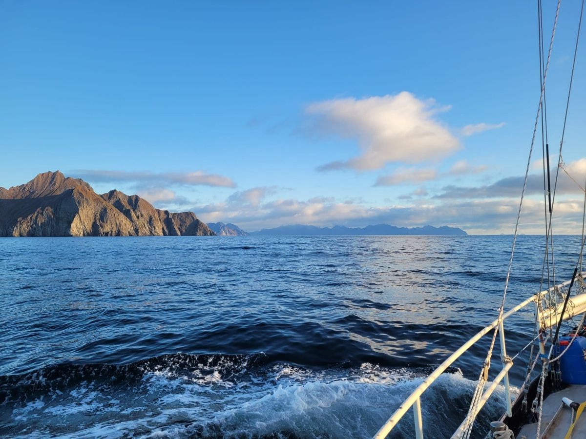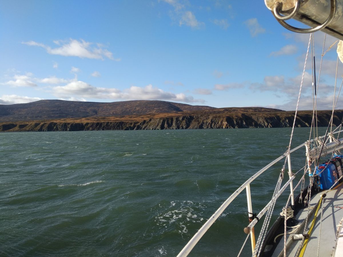 Mittwoch können wir ausnahmsweise den ganzen Tag segeln. Geschwindigkeit und Kurs stimmen. Fein. Das war in den letzten 3 Monaten eher die Ausnahme. Macht Spaß. 🙂 Mit Vollzeug halten wir auf Cape Newenham zu. Das wird unser letztes Kap auf der Nordseite der Aleuten sein. Danach folgt nur noch die große Bristol Bay bis zum False Pass. Allerdings müssen wir uns vorerst in Geduld üben. Die derzeitigen Prognosen geben uns keine 3 Tage Wetter-Beruhigung, um auf die andere Seite zu schlüpfen. Wir müssen uns vor einem mehrtägigen Sturm aus Nord-Ost verstecken und haben dafür die Hagemeister Insel ausgewählt. Am Abend soll es zunächst Starkwind aus Süd geben. Man merkt bereits um 16.00 Uhr, dass Wind und Wellen zunehmen. Wahrscheinlich wird es bald Zeit zum Reffen. Heute Nacht fahren wir durch bis zum ersten Ankerplatz der Hagemeister Insel, um den Südwind dort abzuwarten. Wenn der vorbei ist, dann möchten wir ein paar Meilen weiter zu einem anderen Unterschlupf, um den heftigen Nord-Ost durchziehen zu lassen. Kann ein paar Tage dauern, auch wenn es uns nicht gefällt. Der Golf von Alaska ist schon ganz nah, aber davor liegt der knifflige False Pass. Wir können erst aufatmen und uns entspannen, wenn wir auf der anderen Seite der Aleuten im Pazifik sind.