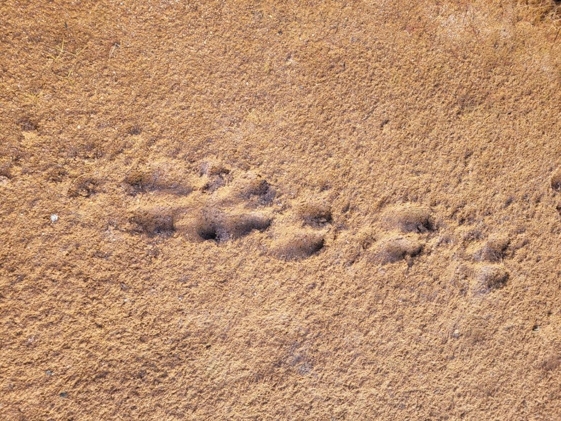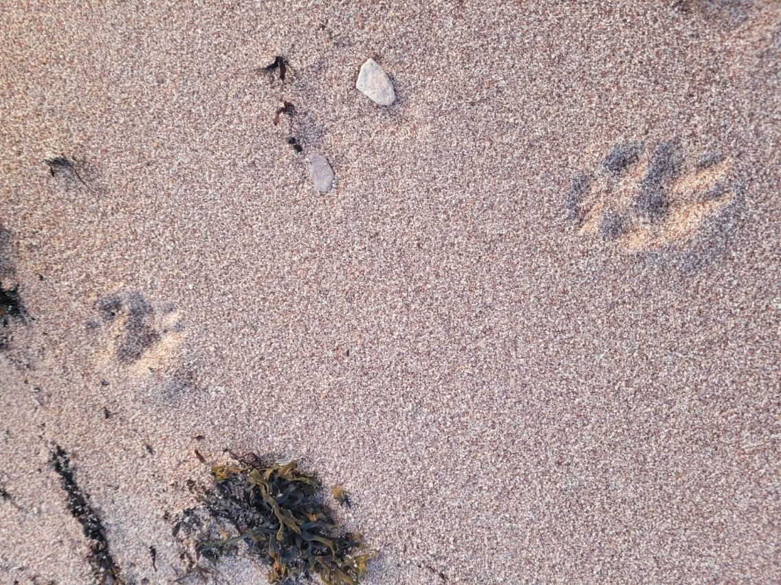 Nachmittags lassen wir das Dingi zu Wasser und paddeln an Land. Schönes Wetter, blauer Himmel und Sonnenschein. Genau richtig, um auf andere Gedanken zu kommen. Es scheint Niedrigwasser zu sein. Am Flutsaum sind zahlreiche Tierspuren zu erkennen. Es gibt hier also Wild, wir sehen es nur nicht.